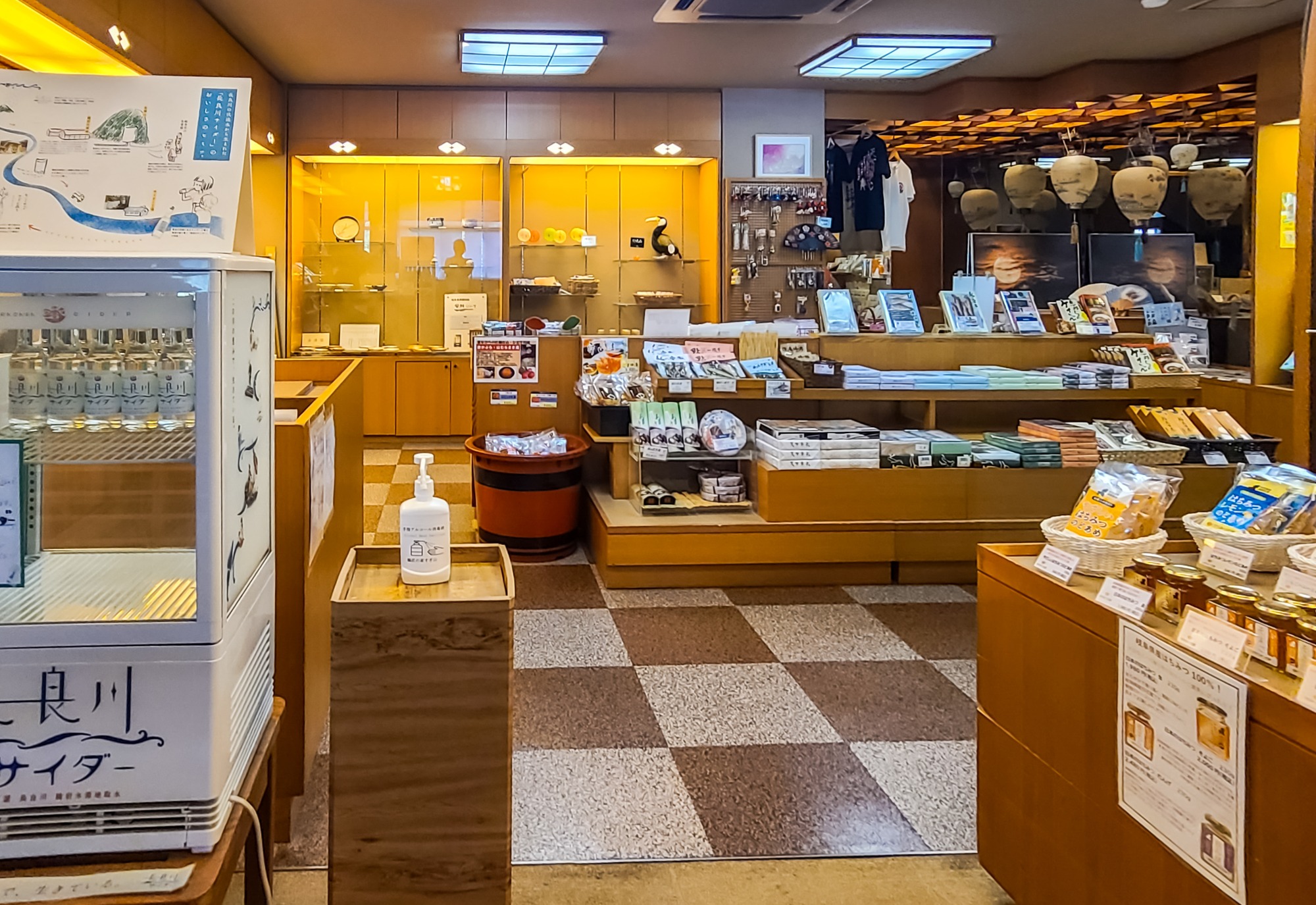 岐阜の銘菓や岐阜ちょうちん、うちわ、民芸品、鮎の甘露煮や鮎昆布巻きそしてすぎ山オリジナル特選の佃煮など種類も豊富で充実した品揃えです。
