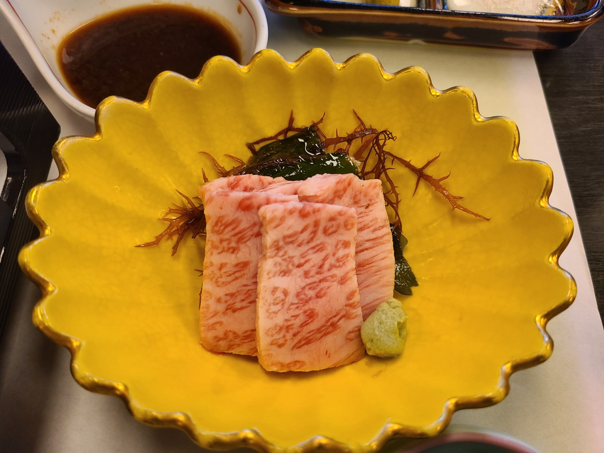 飛騨牛の生ハム。やわらかくて口に入れたらとろけるような食感!わさび醤油でいただきました。