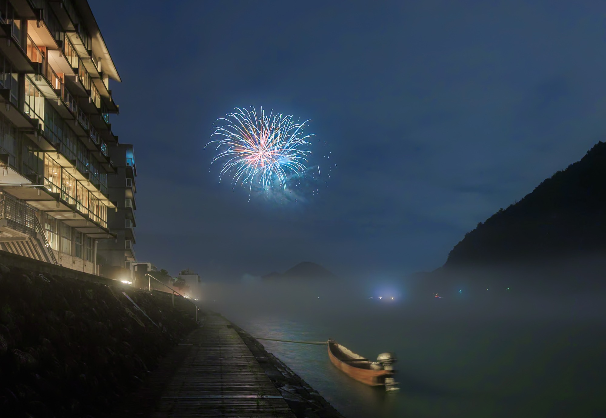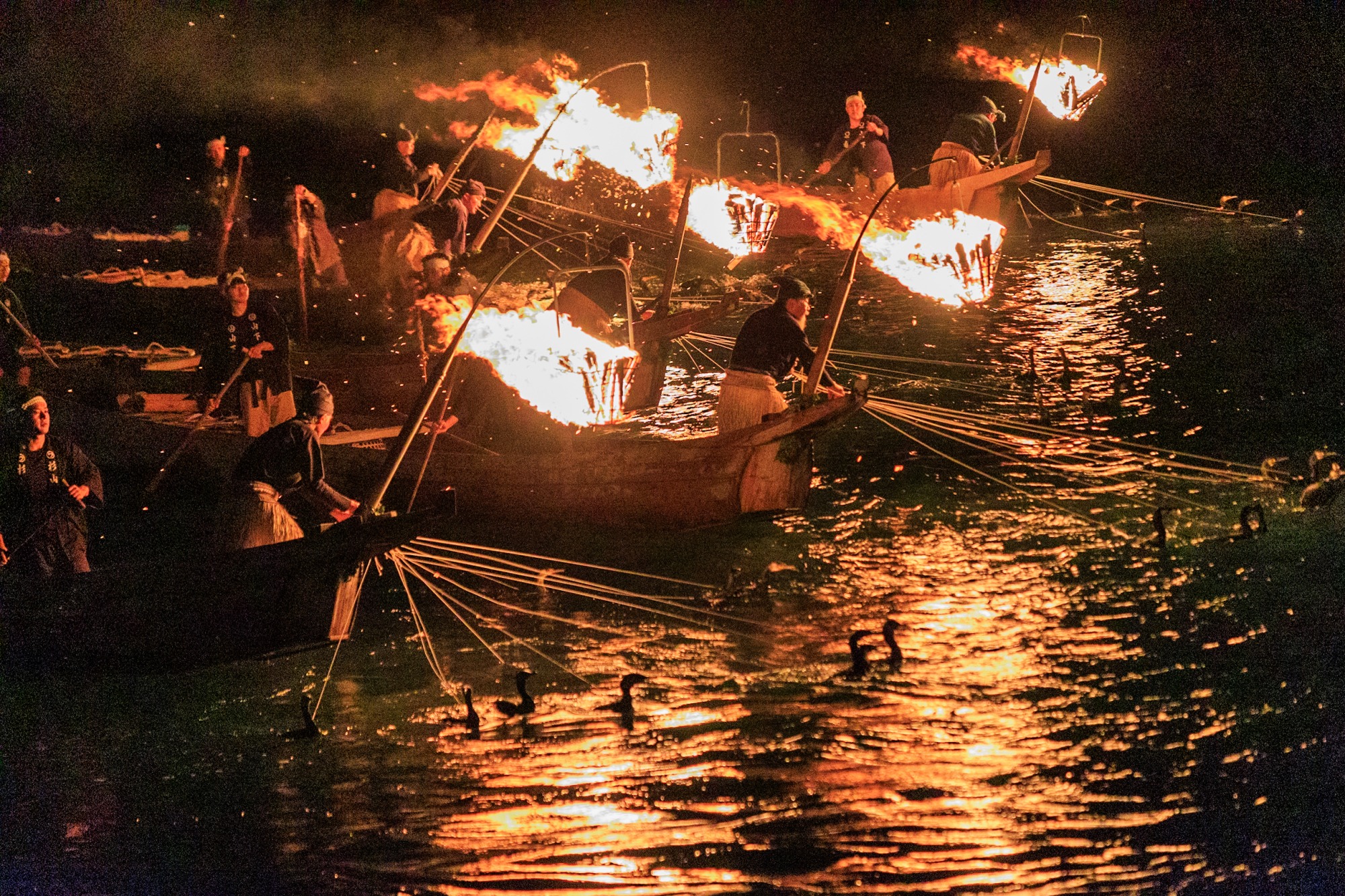 鵜飼開催日は毎夜、19:45分頃に鵜飼開始を合図する花火が上がり、いよいよ鵜飼が始まります。