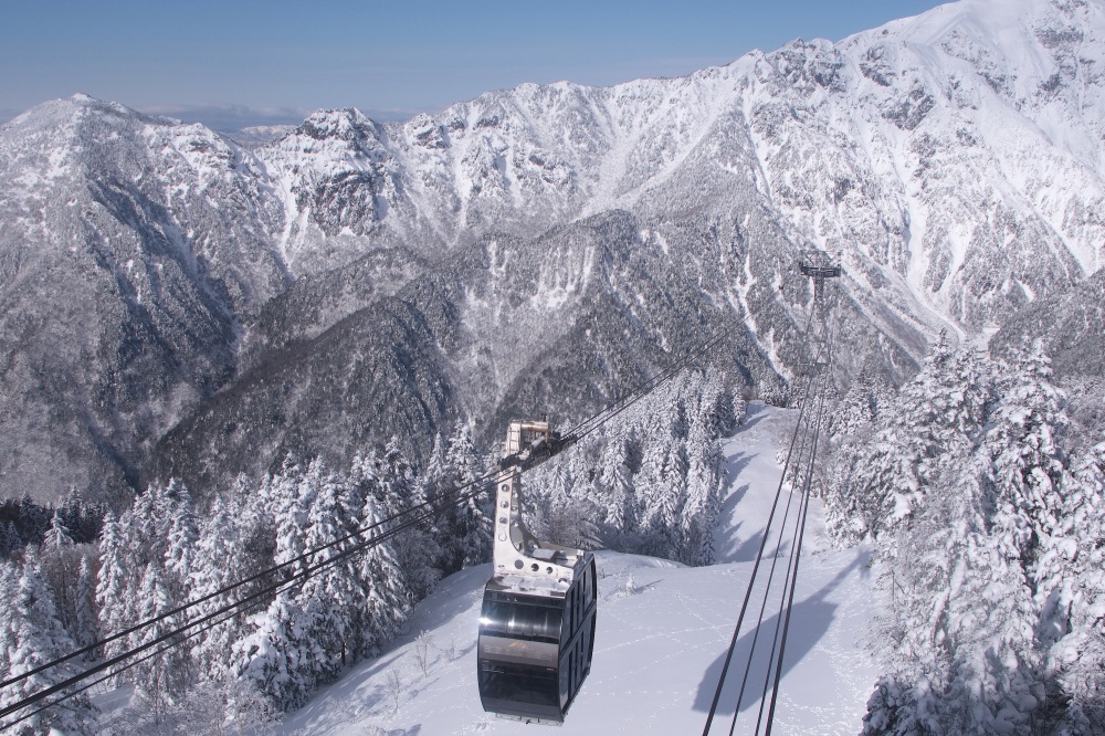 西穂丸山への登山口は、新穂高ロープウェイの西穂高口駅を先に進んだ場所にあります。厳冬期の北アルプスの稜線まで、一気にアクセスできるロープウェイの利点は大きいです。ロープウェイの醍醐味は、乗車中や西穂高口駅の展望台から広がる北アルプスの絶景にあります。