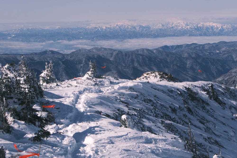冬の高山から広がる、乗鞍岳と白山の雄大なパノラマ
