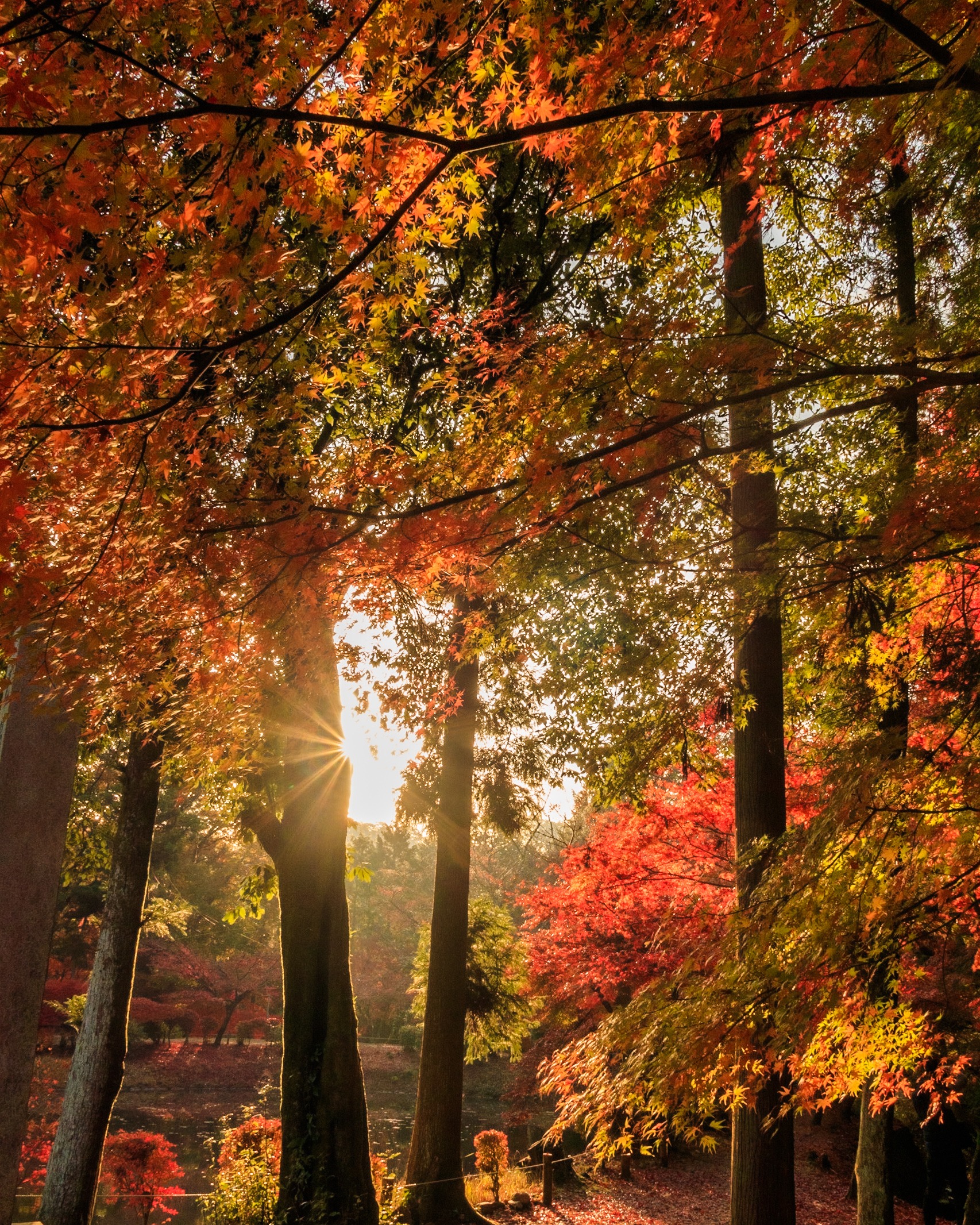 カラフルで鮮やかに色付いた木々に光が当たるとさらに美しさが増します。ゆっくり歩きながら紅葉を満喫してくださいね。