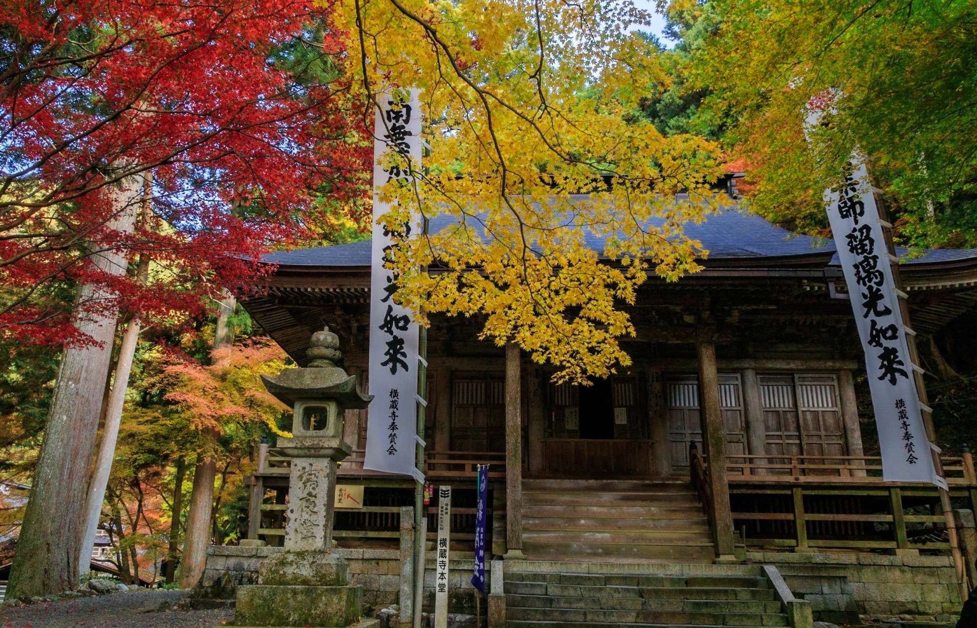 秋になると、周囲の山々や境内に植えられたもみじや楓が鮮やかに色づき、紅葉の名所として多くの人々が訪れます。紅葉シーズンには「横蔵寺もみじまつり」が開催され、夜はライトアップも楽しめます。