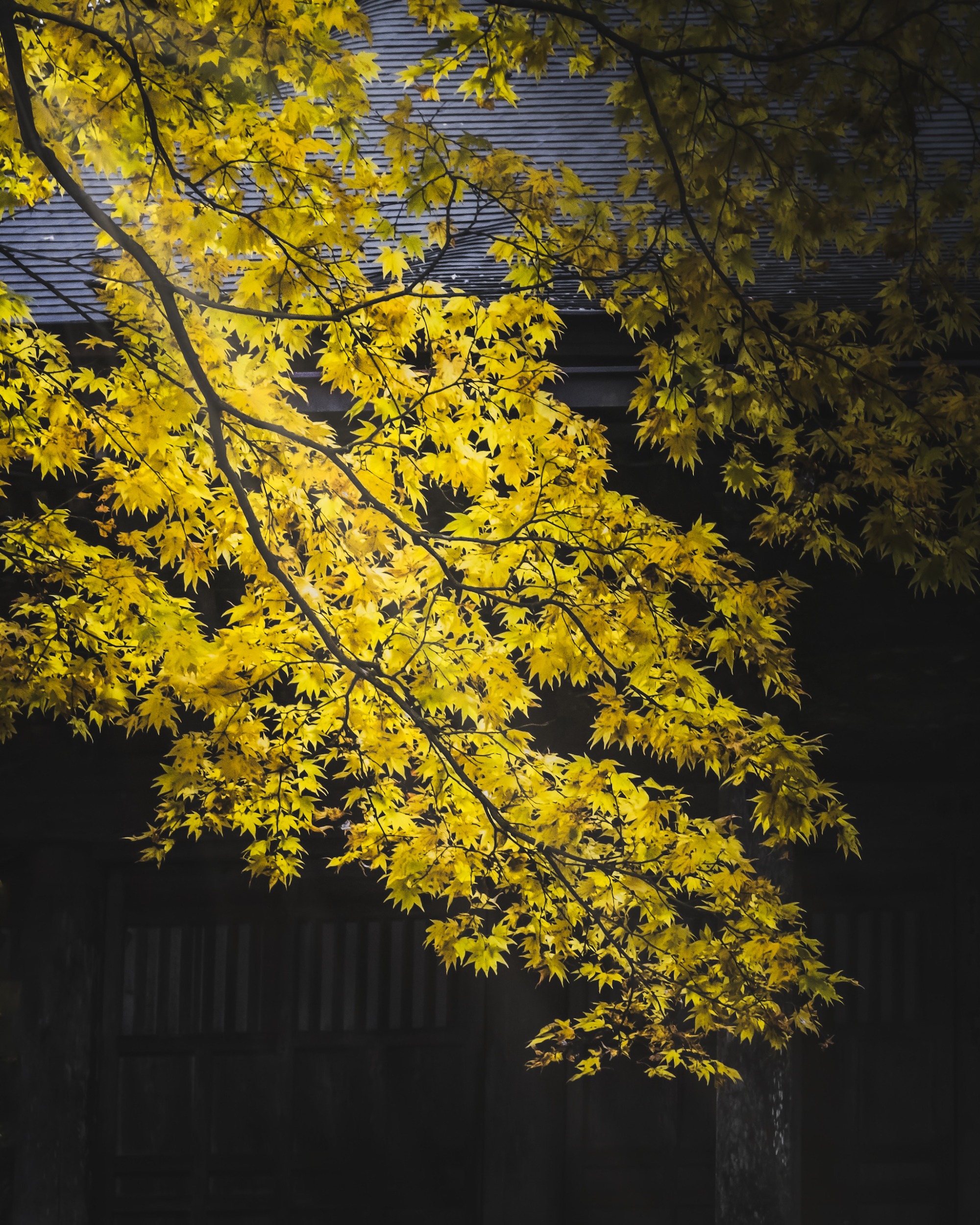 紅葉シーズンには赤、黄、緑のグラデーションの木々がとても美しく本堂を彩ります。