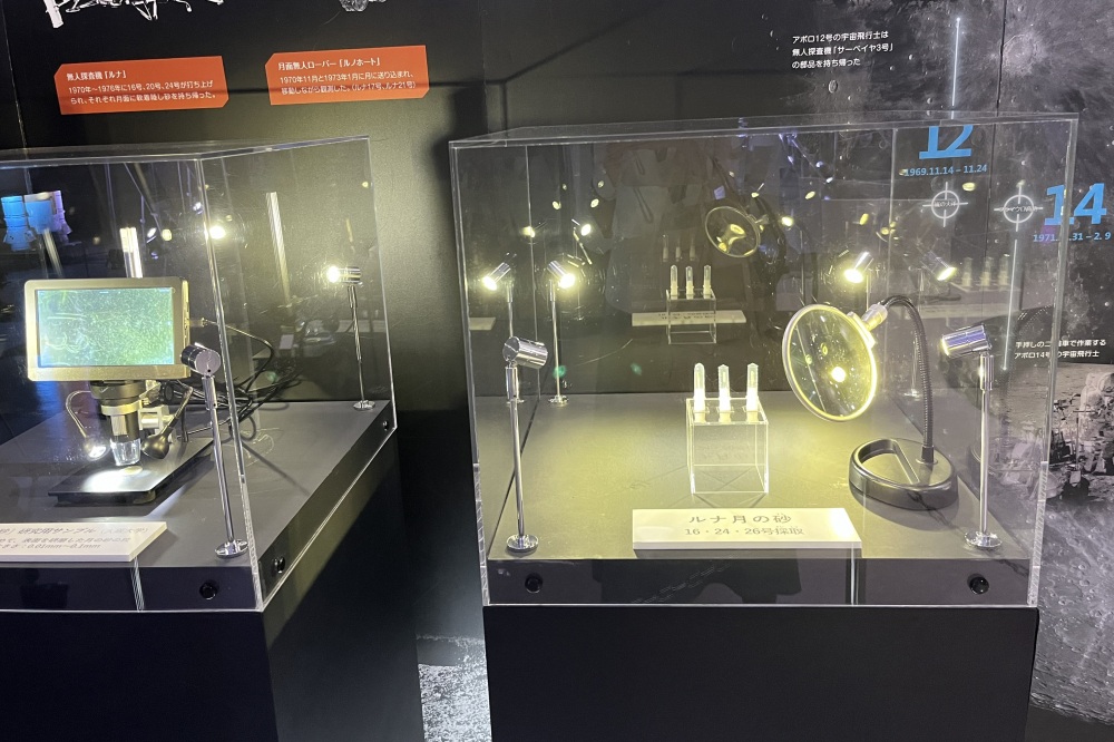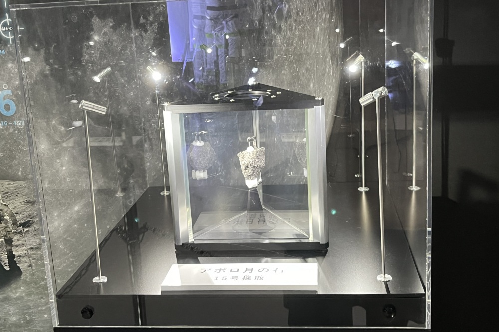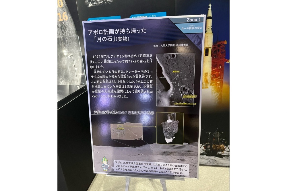 月面着陸に成功したアポロ15号が持ち帰った月の石などが展示されています。