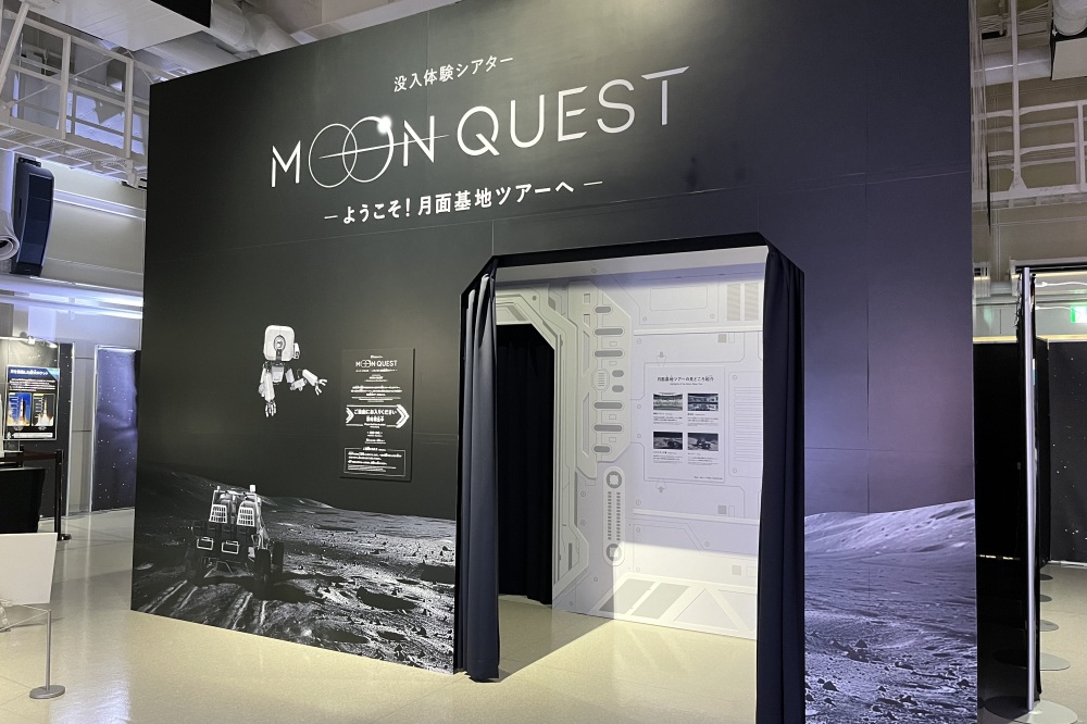 月への旅行を映像で体験できる没入体験シアター「MOON QUEST」は大迫力!幅約5m×高さ3mの5面と床面の大型スクリーンで、実際に月面に降り立ったような臨場感あふれる体験ができます。