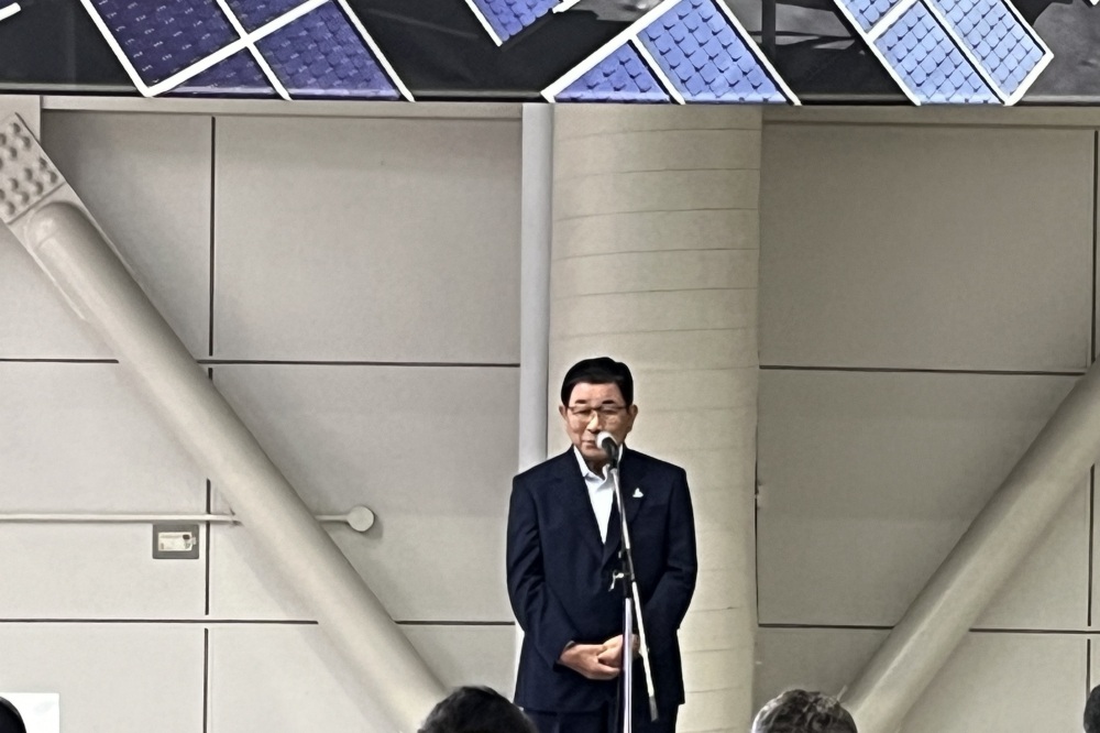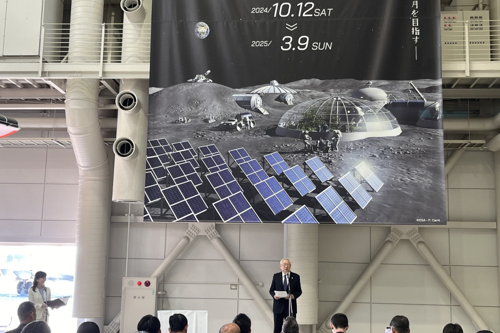 常田佐久 館長は「今回の企画展は世界の宇宙開発でもっともホットなテーマ。展示を見て、なぜ再び人類が月を目指すのかを感じ取ってほしい」とあいさつ。
