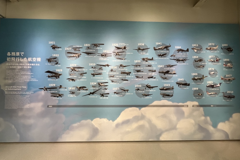 20機以上の実機がフロアいっぱいに並べられたこの展示は壮観です。どのように技術開発が進んで行ったのか、年代ごとにわかるようになっています。