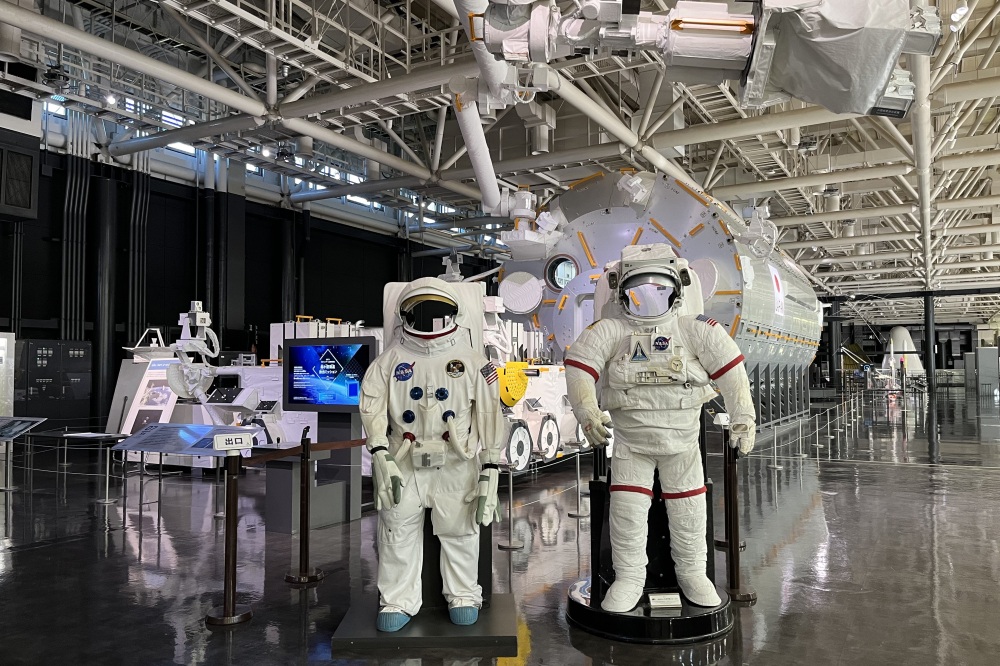 2階には宇宙への挑戦にまつわる展示があります。ニュース映像などで見た出来事が具体的にイメージでき、よく理解できます。