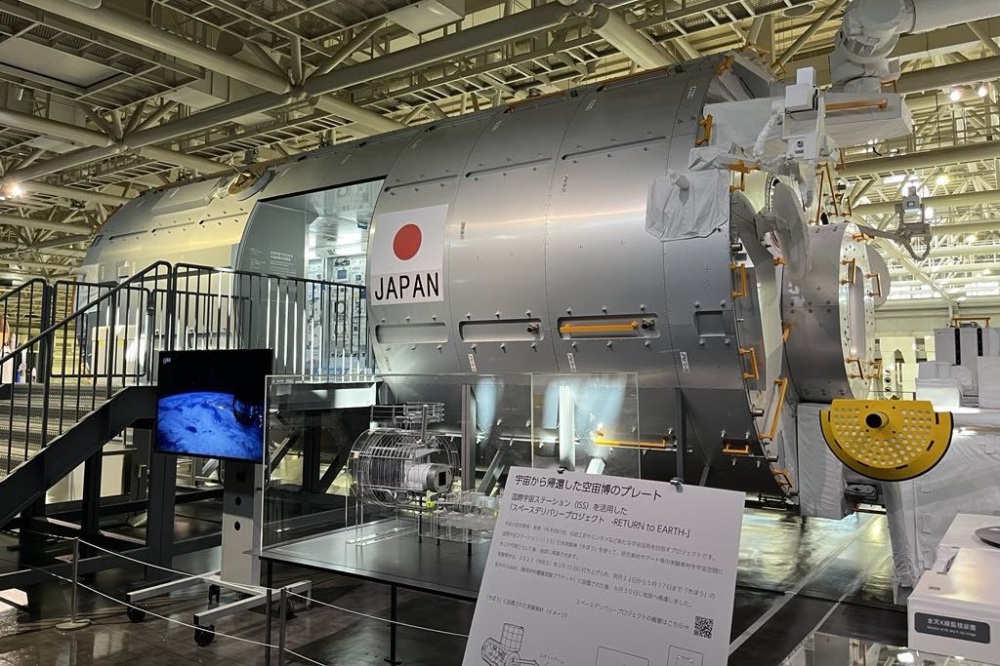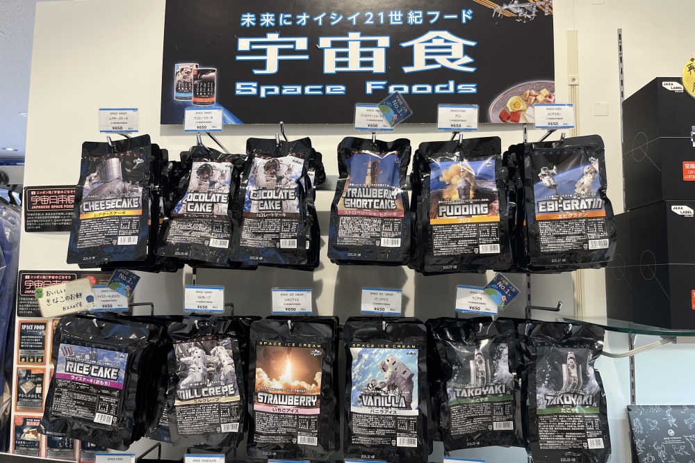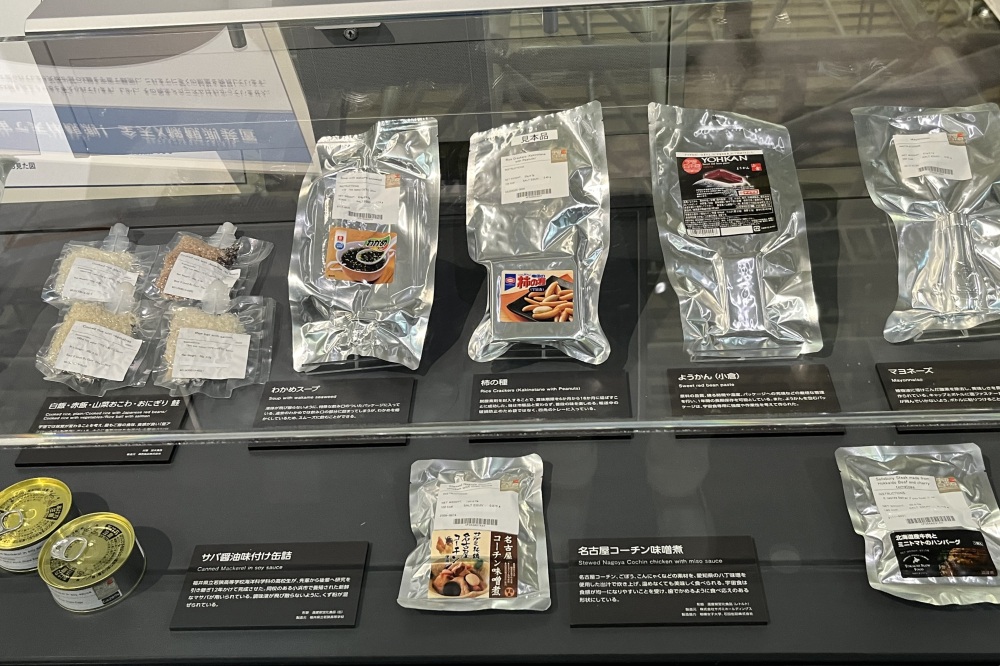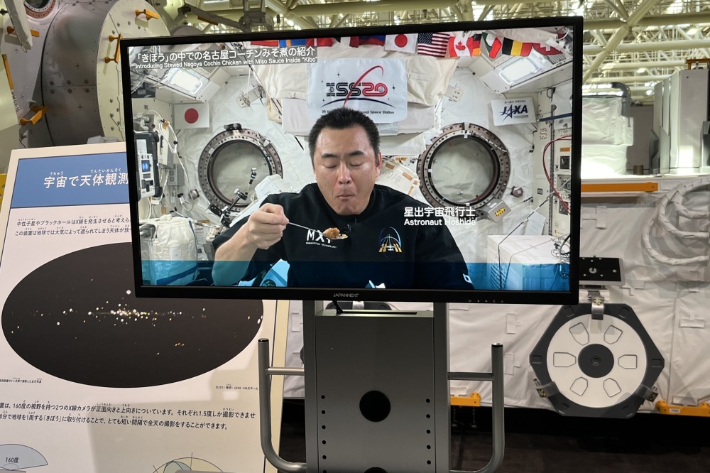 ISS日本実験棟「きぼう」の模型も展示され、宇宙食の紹介も。味もどんどん改良されて食べやすくなっているようです。