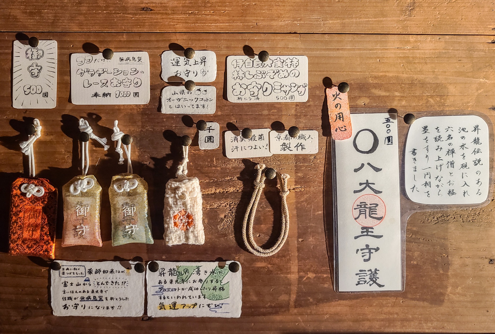 地元・山県のオーガニックコットン入りのお守りや、東光寺さん限定のグラデーションレースのお守りなど、各種取り揃えられています。