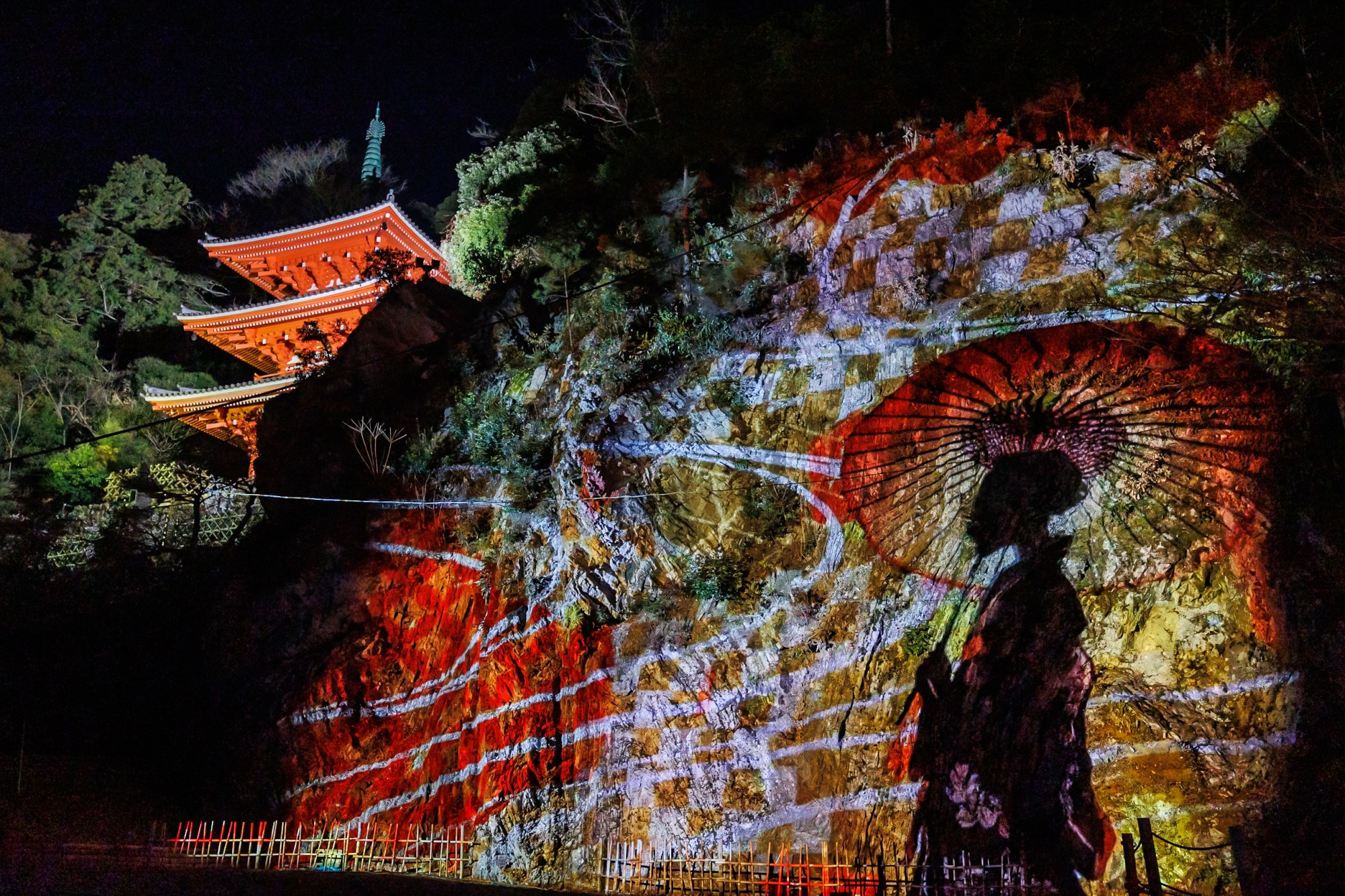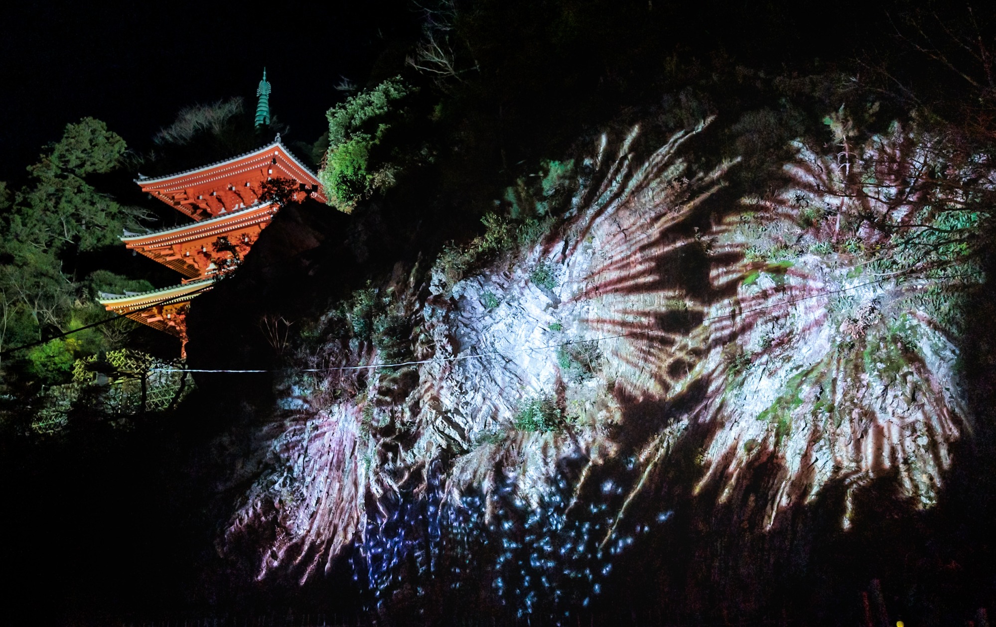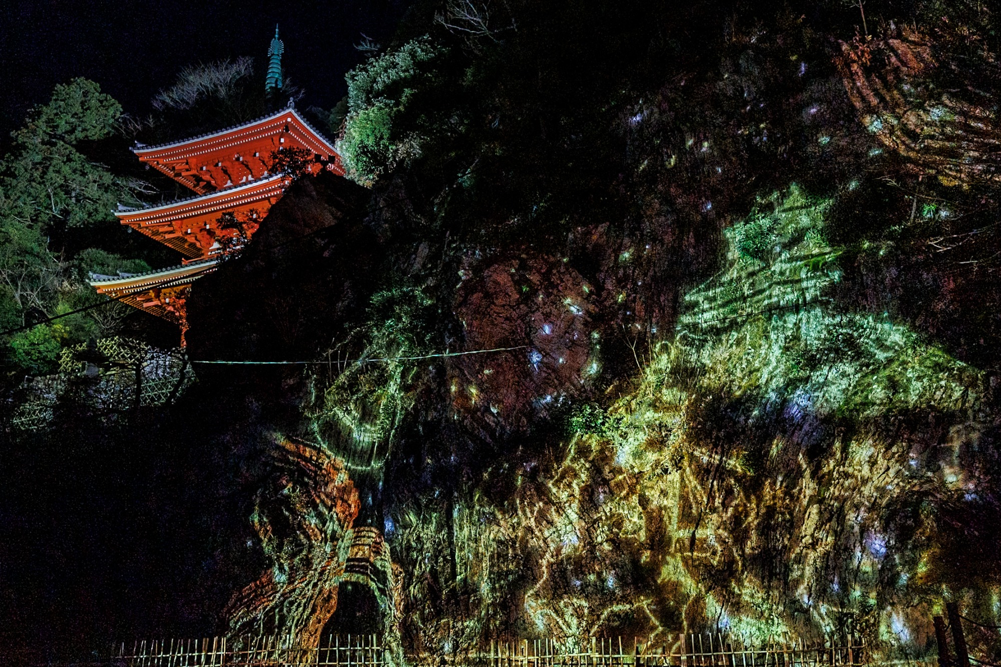 「奇跡の崖」迫力満点のプロジェクションマッピング