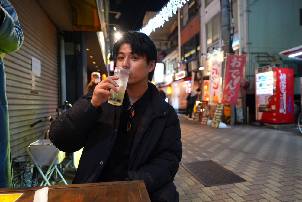 玉宮には「花串庵」が何軒もあり、チェーン店ですが、それぞれ少しずつ雰囲気が異なります。おでんの味はどの店舗も同じで、どこも美味しいので、1軒目におすすめです。