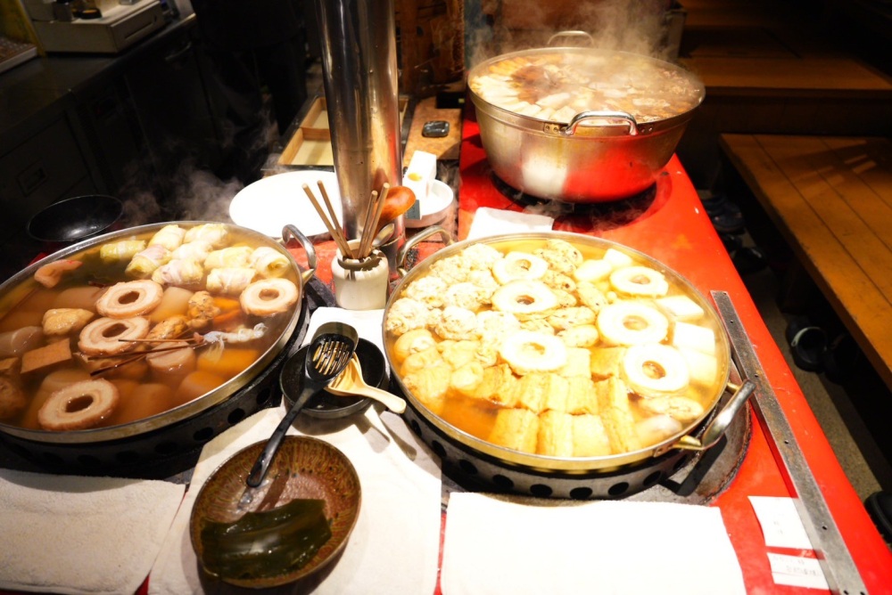 おでんの種類がとにかく豊富で、「こんなメニューまでおでんになるの?」と思うほど。特に、大きな大根は味がしみていて、ぜひ食べてほしい一品です。