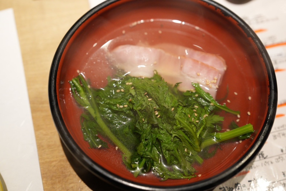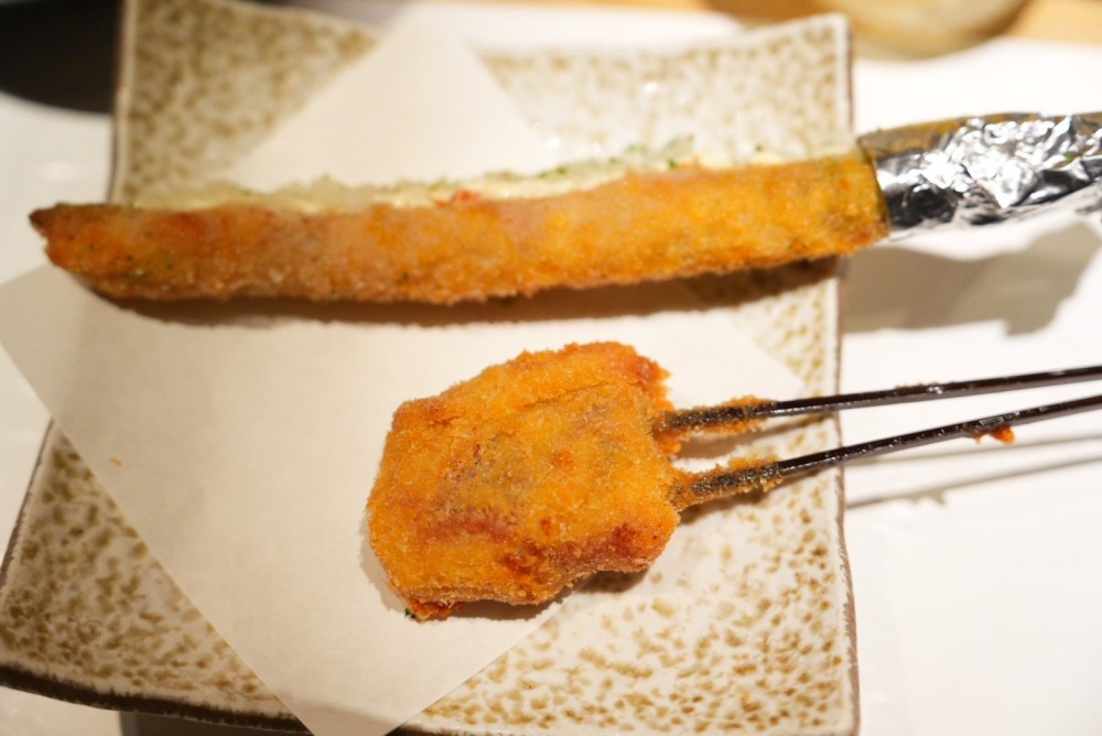 今回注文したのは、「大根・レタス・餃子・春菊とベーコンのおでん」「アスパラのフライ」「白子」など。