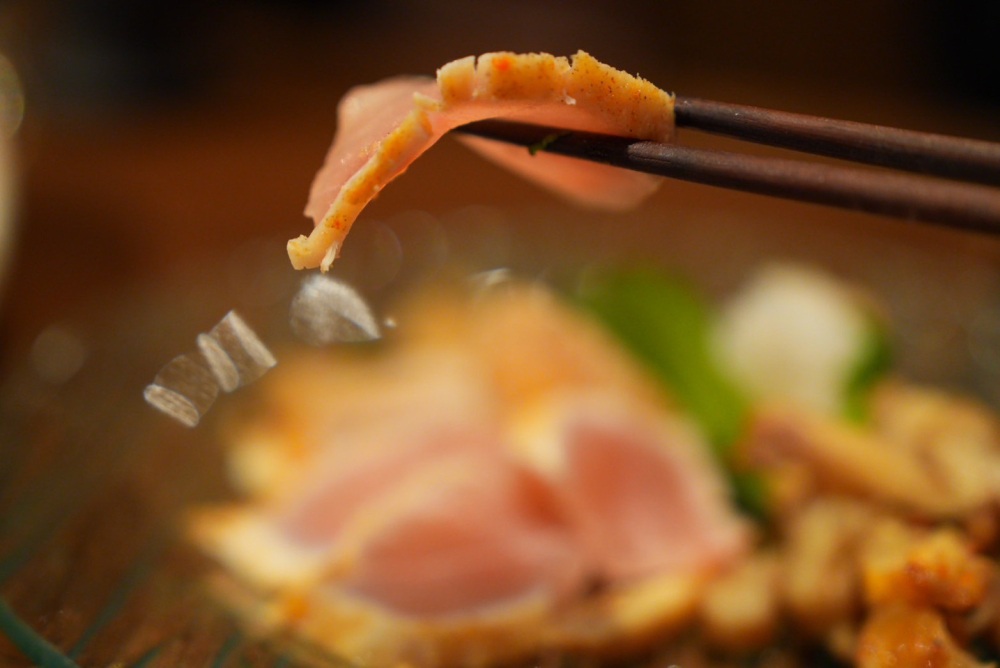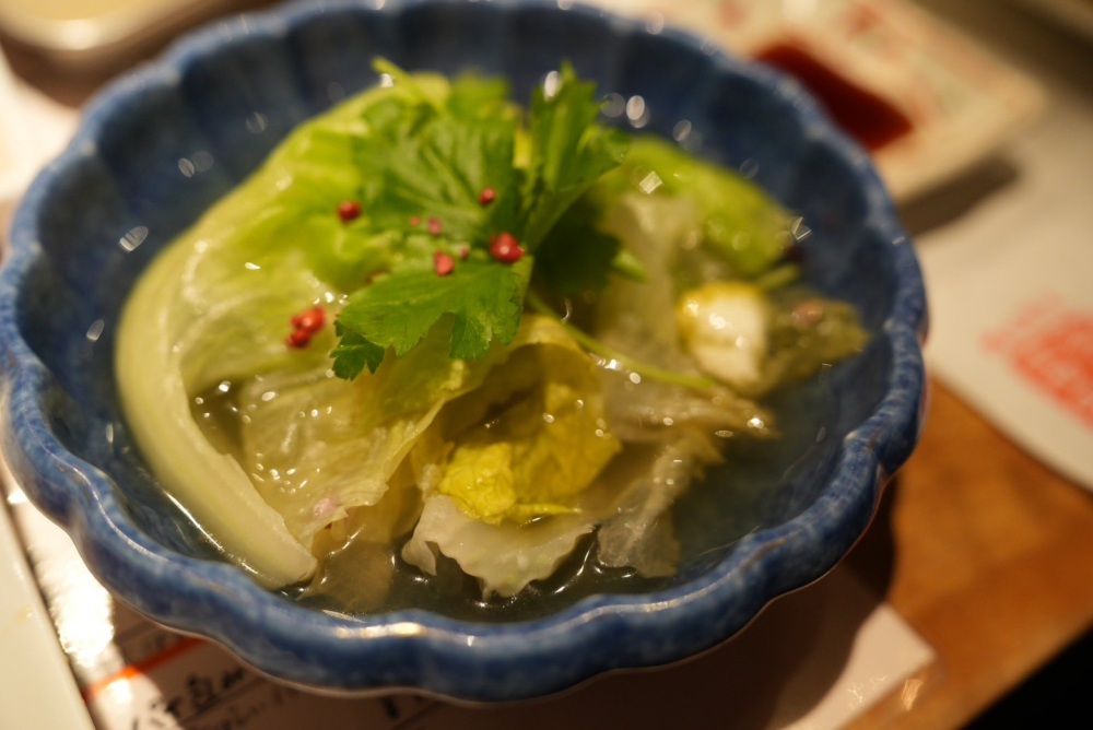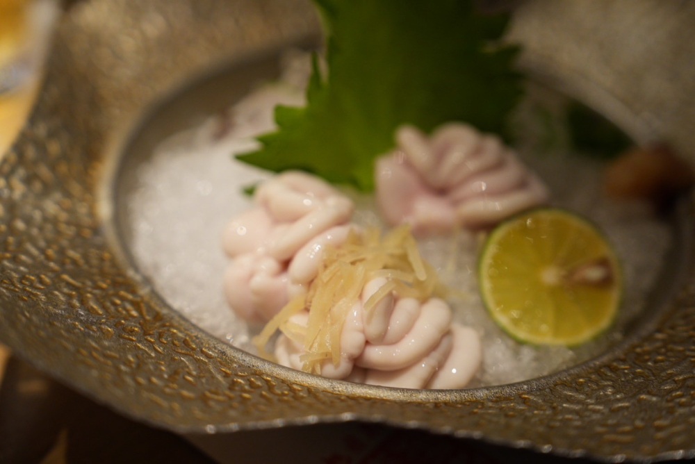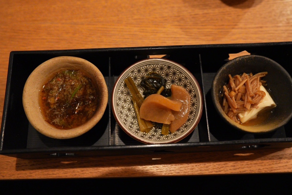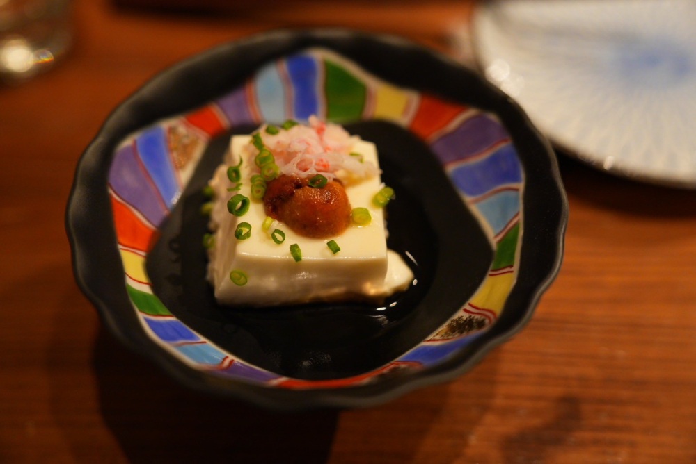 お通しで出てきたのは、初めての食感の不思議な豆腐。「あすか豆腐」というもので、牛乳を使っているそうです。とても美味しく、印象に残る一品でした。