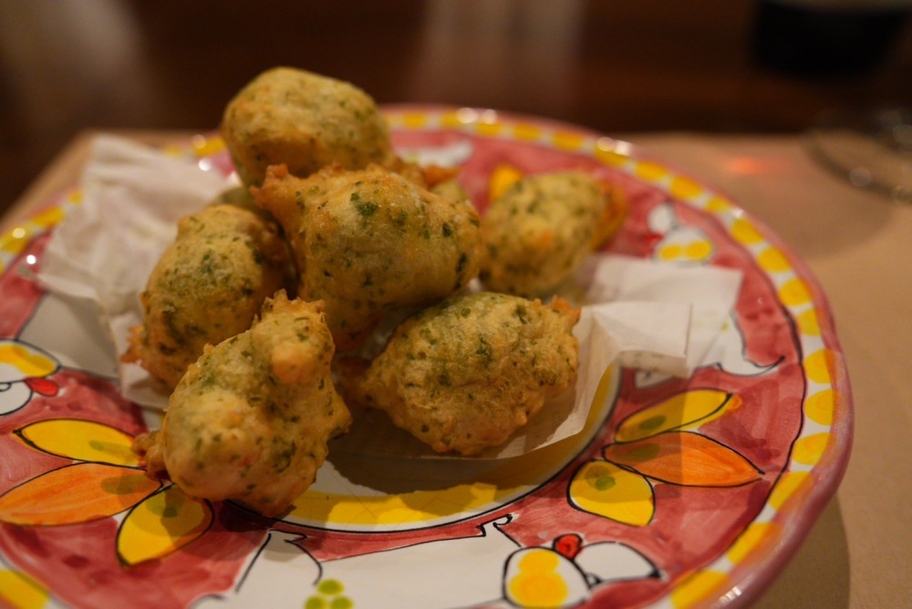 ゼッポリーニを初めていただきましたが、これは毎回食べたくなる美味しさ。前菜も生ハムも、お酒によく合いました。