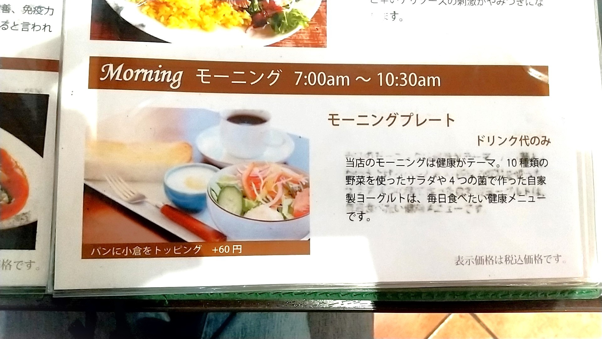 モーニングサービスは7:00~10:30まで。