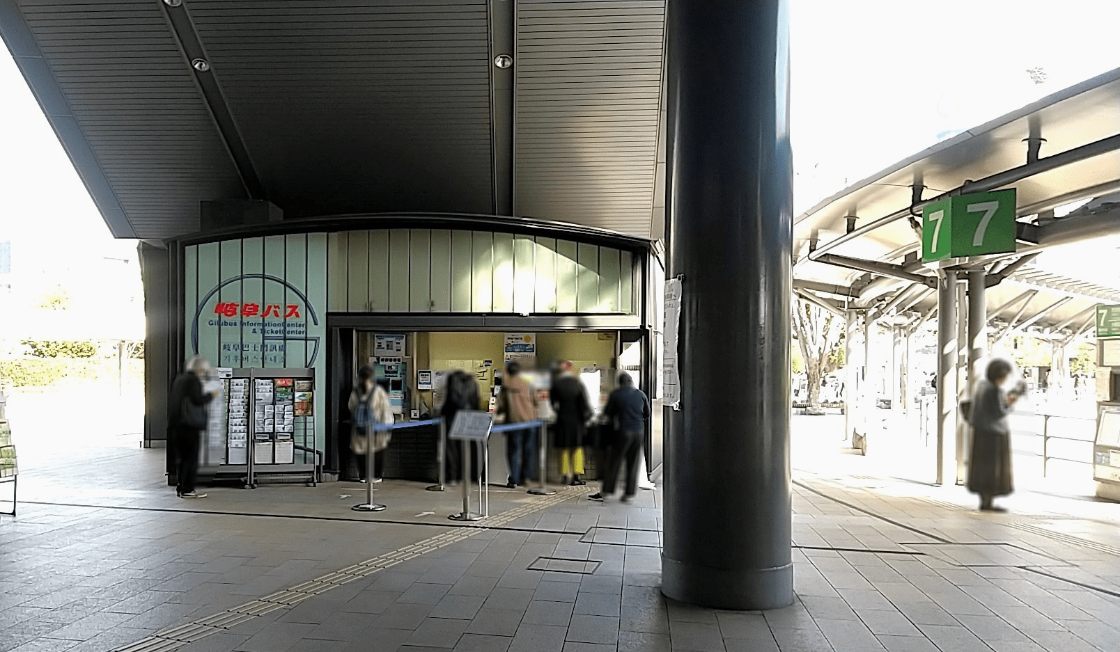 バスロータリーの横には、岐阜バスの窓口があります。