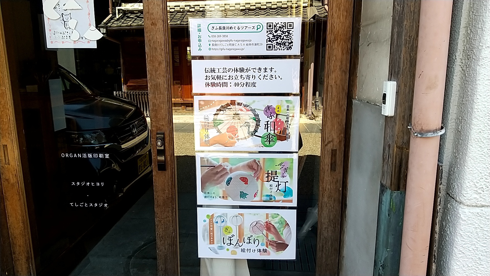 和傘や提灯の絵付けなどの体験ができるお店もありますよ。
