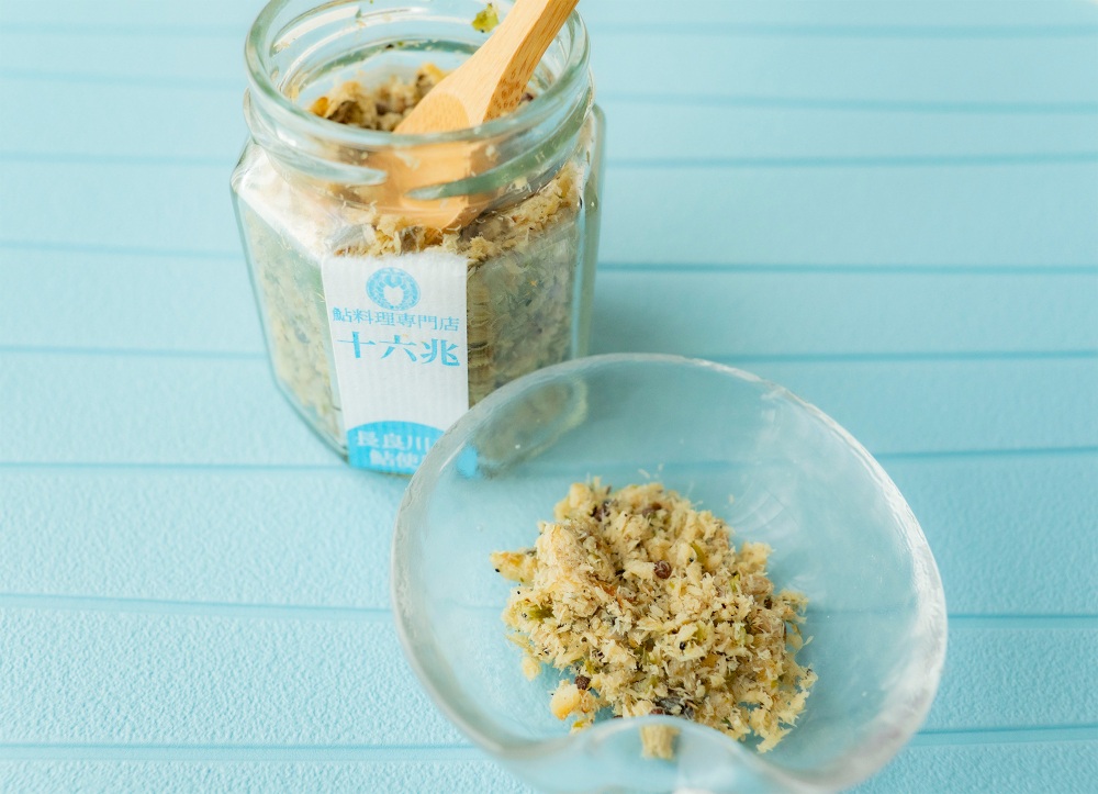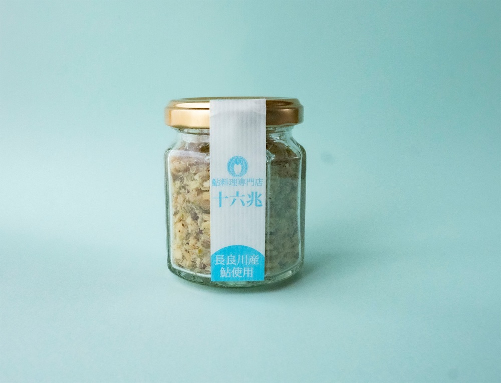 海なし県の岐阜県は、川魚に馴染みが深く、とりわけ鮎は岐阜の県魚とされるほど、身近な魚のひとつ。岐阜県産の長良川の種鮎を、「水の都」大垣の地下水で育てた、鮎料理のお店が大垣市にある「鮎料理専門店十六兆」です。同店では鮎を使ったこだわりのオリジナル商品を何種類か出していますが、中でも「鮎塩焼きほぐし」は、ごはんのお供にぴったり。鮎の塩焼きをそのまま瓶詰めにしているそうで、思わず「今、焼いたばっかり?」と聞きたくなるような、焼きたての鮎の豊かな香りと、香ばしさが、鮎好きにはたまりません。「これぞまさに鮎!」と言いたくなる逸品です。