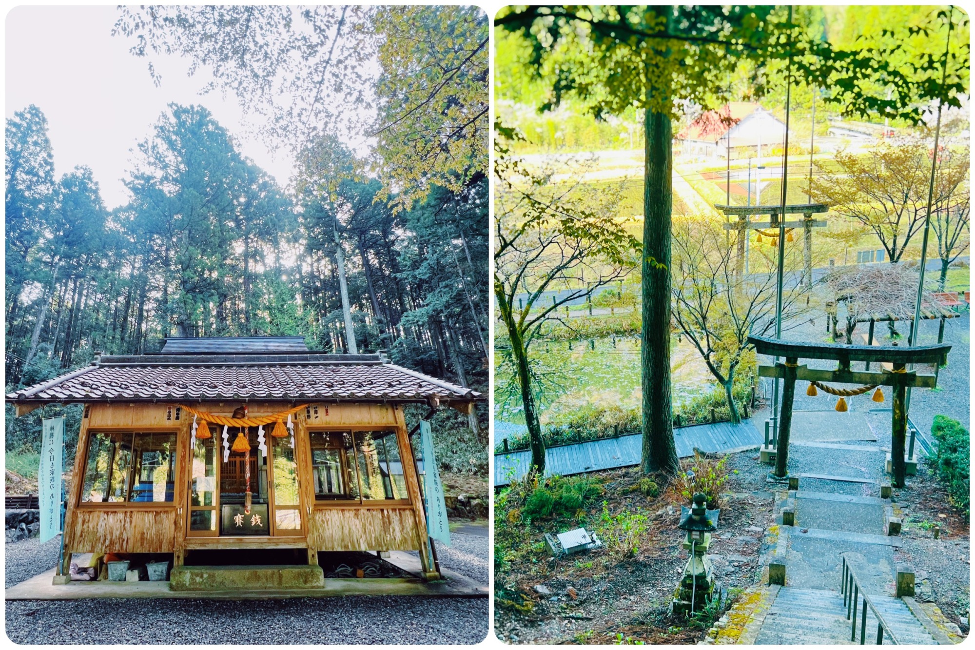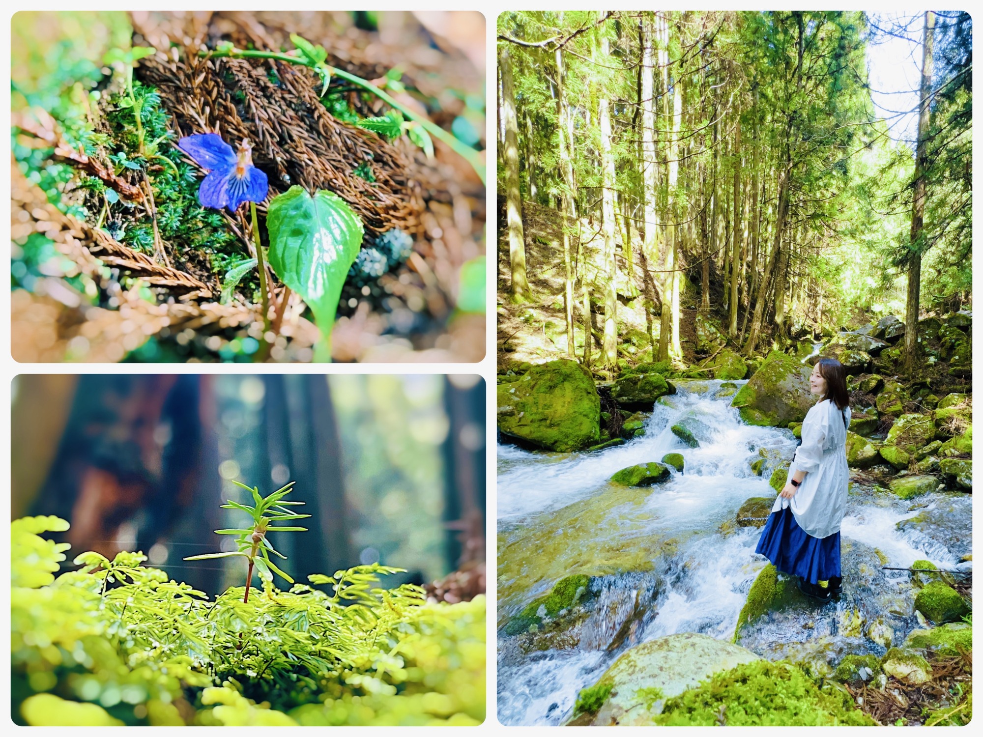 周囲には美しいせせらぎや滝、苔むした岩々があり、マイナスイオンと木の香りに包まれた散策路を楽しめます。