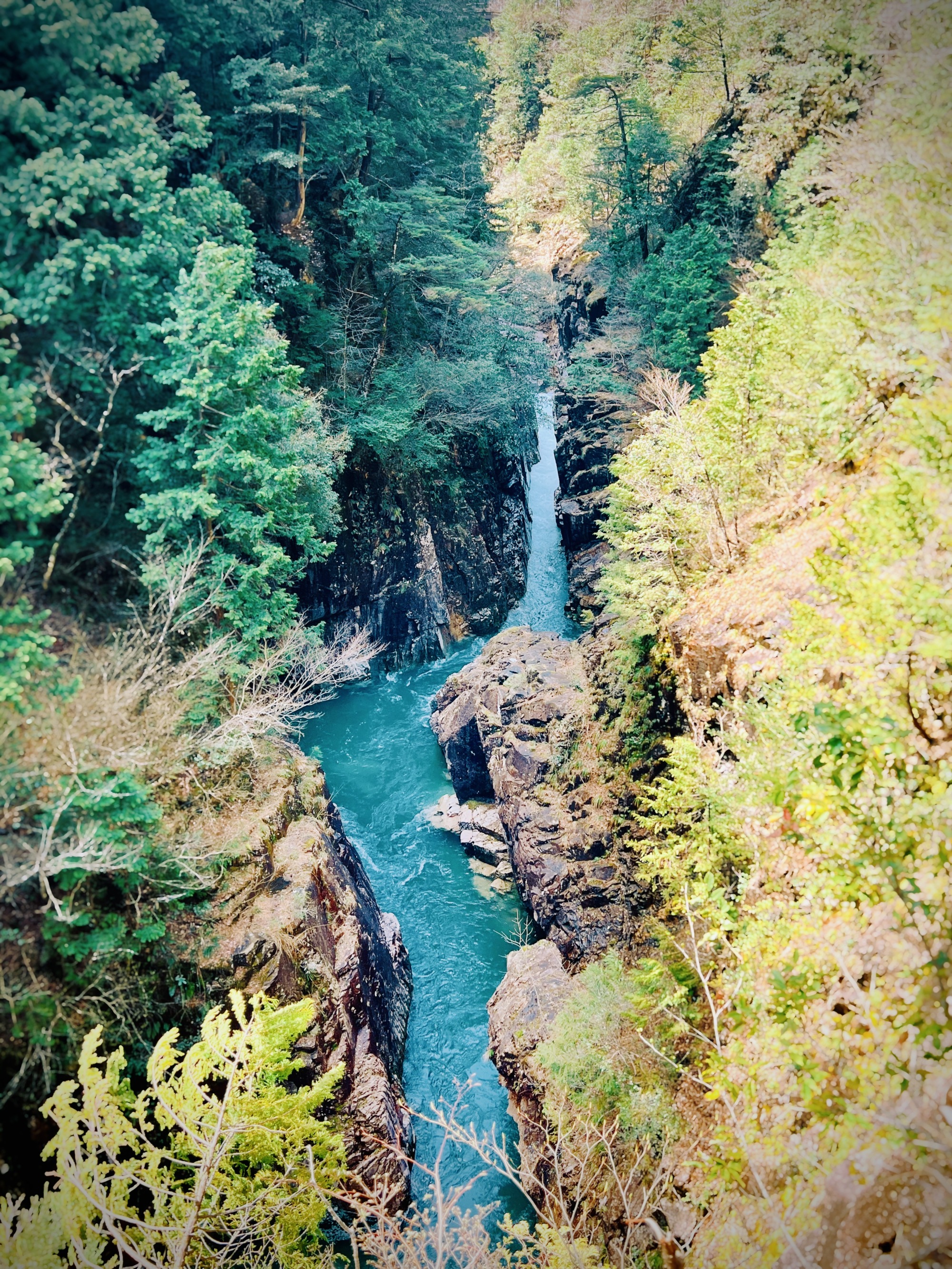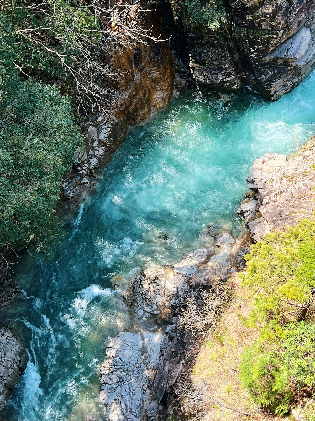 「かおれブルー」とも呼ばれるこの渓谷の水は、まるで宝石のような美しい青!