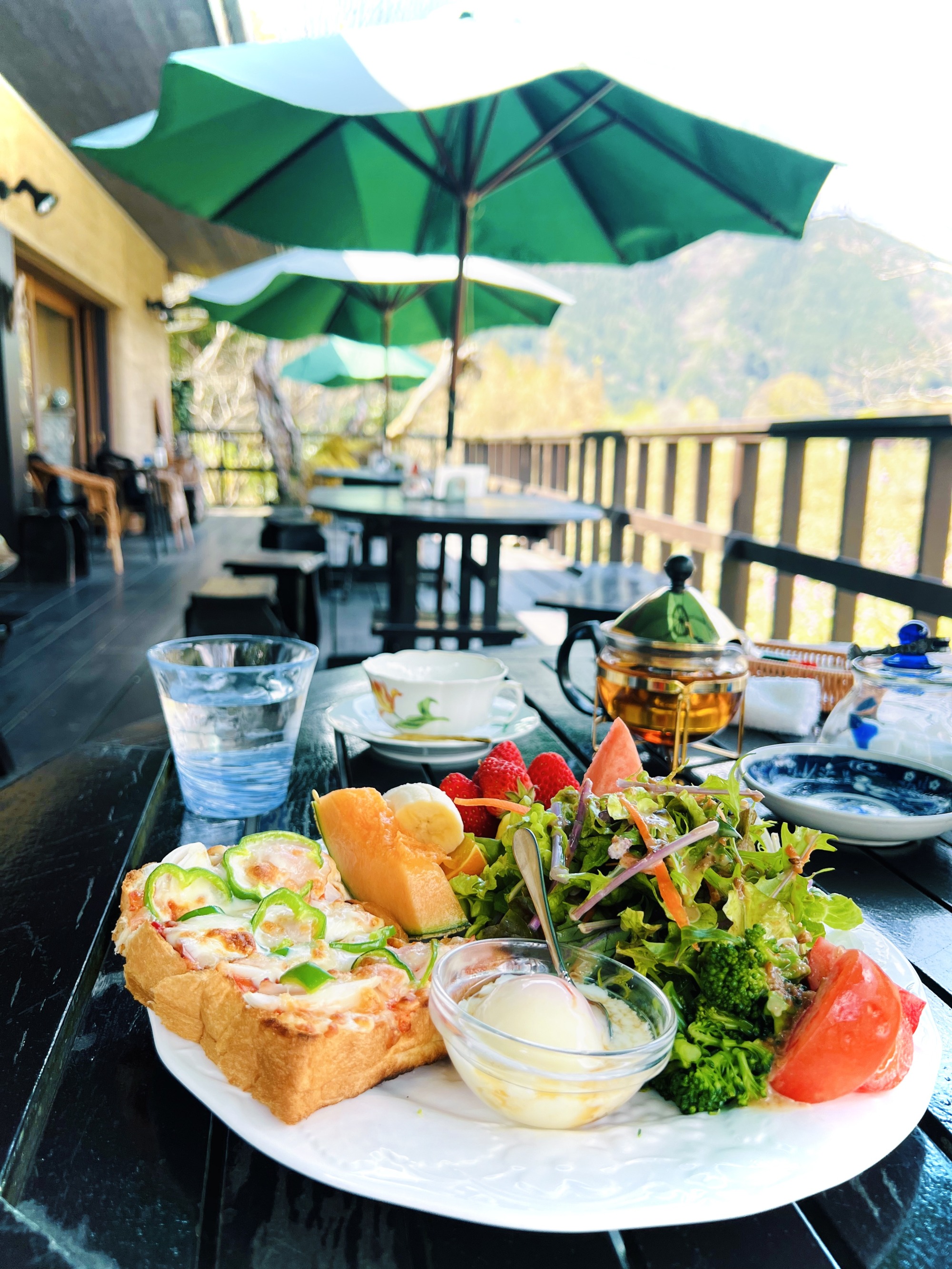 自然の中を思い切り散策した後は、カフェでのんびりランチ。