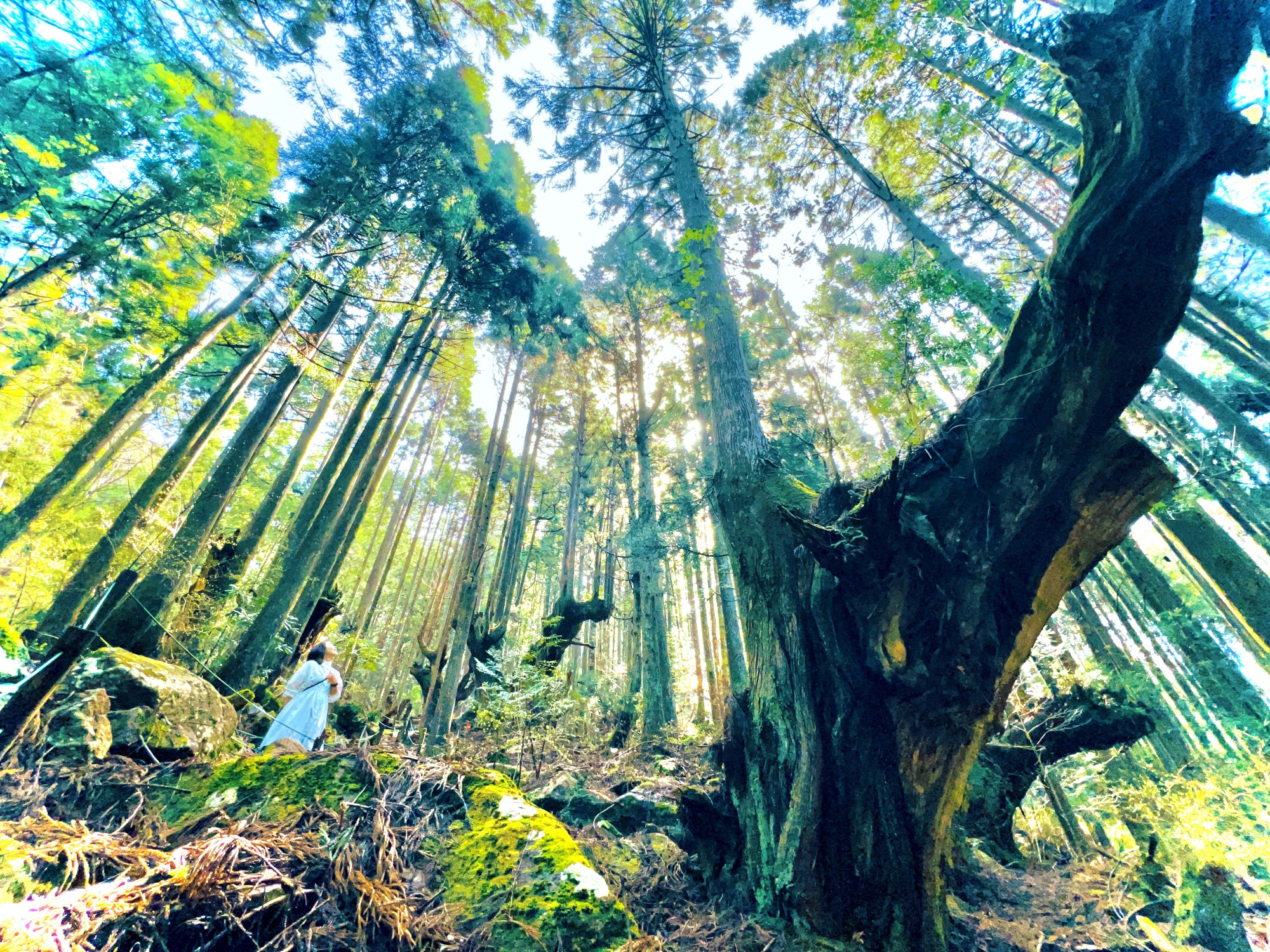 朽ちていく古い木を苗床にして、そこから新しい杉が何本も天に向かって伸びる姿は、まるで神の手のよう。