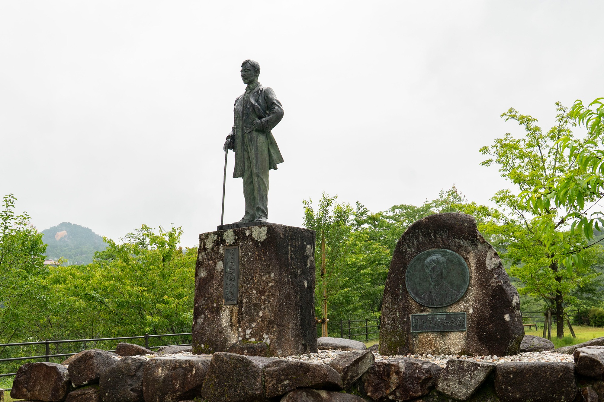 大井ダムと、併設の大井発電所は、日本の電力界をけん引した福沢桃介(福沢諭吉の養子)によって手がけられたもので、恵那峡県立自然公園内からは、彼の銅像が今も大井ダムを見つめています。