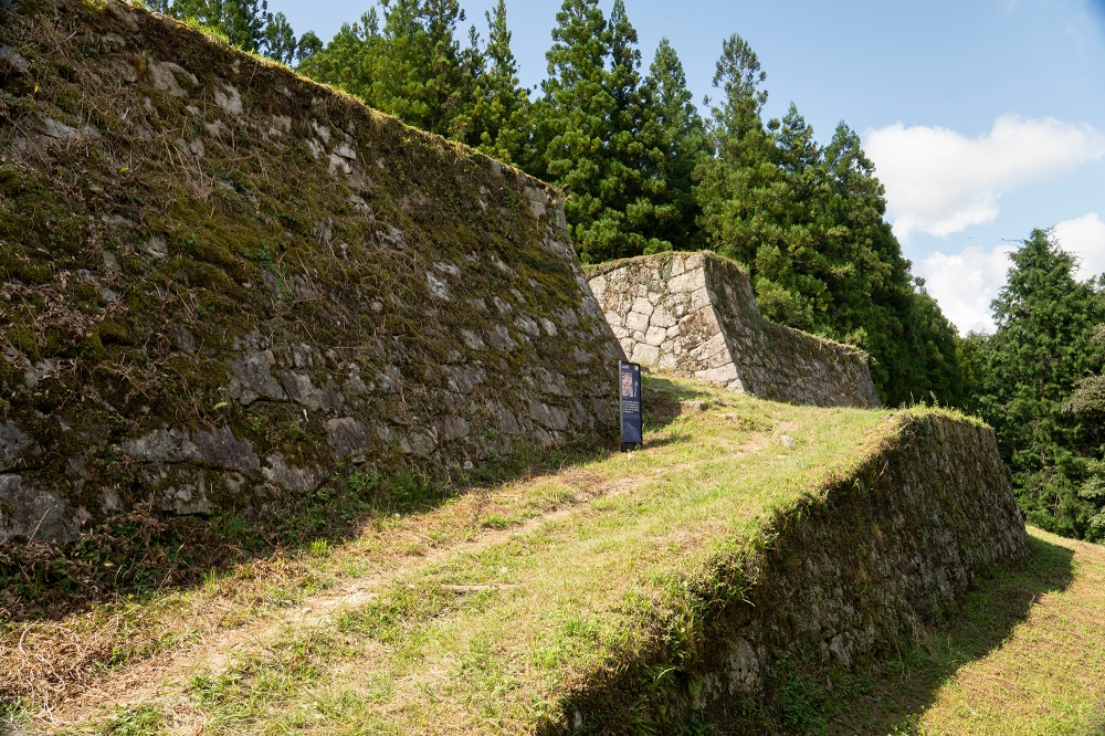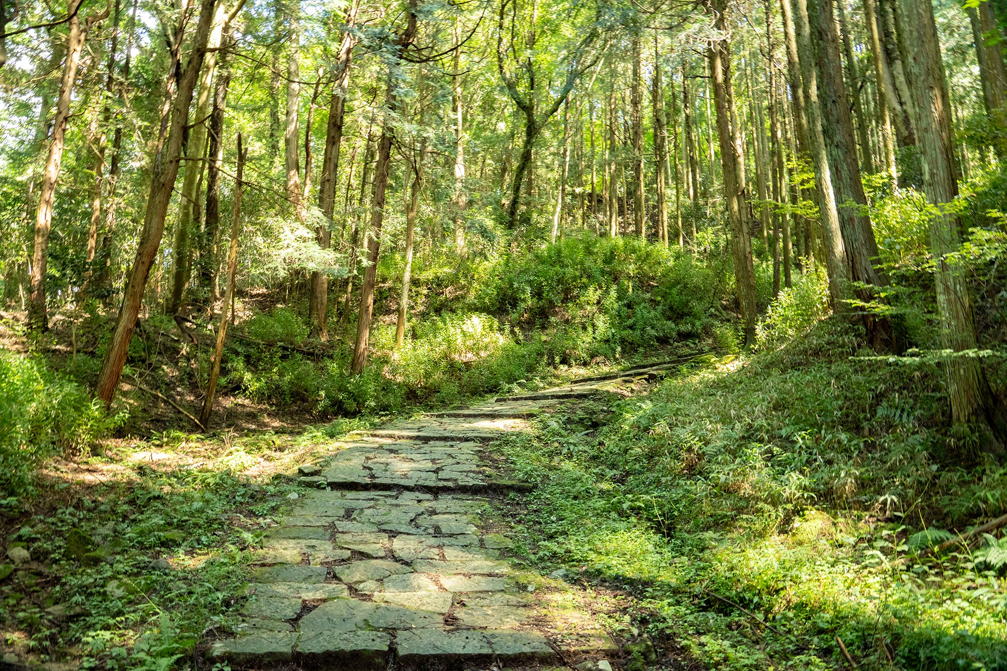本丸近くまでは車で行くこともできますが、できれば岩村歴史資料館から山道を歩いて登るルートがおすすめです。資料館から本丸跡までは、およそ30分ほどの道のりです。私は体力にはあまり自信がないため、途中で休憩を挟みつつ、自分のペースでゆっくり登ったのでもう少し時間がかかりましたが・・・。山の中腹から続く石畳の道は、江戸時代の岩村藩主が整備されたものとされ、当時、武士たちが実際に通った道です。木々に囲まれたその道の、沿道に残る城の遺構のひとつひとつが、遠い時代の記憶を今もこの場所に留めていることを感じさせてくれます。 たどり着いた本丸からの眺望はすばらしく、山城ならではの絶景も見応えがありましたよ。