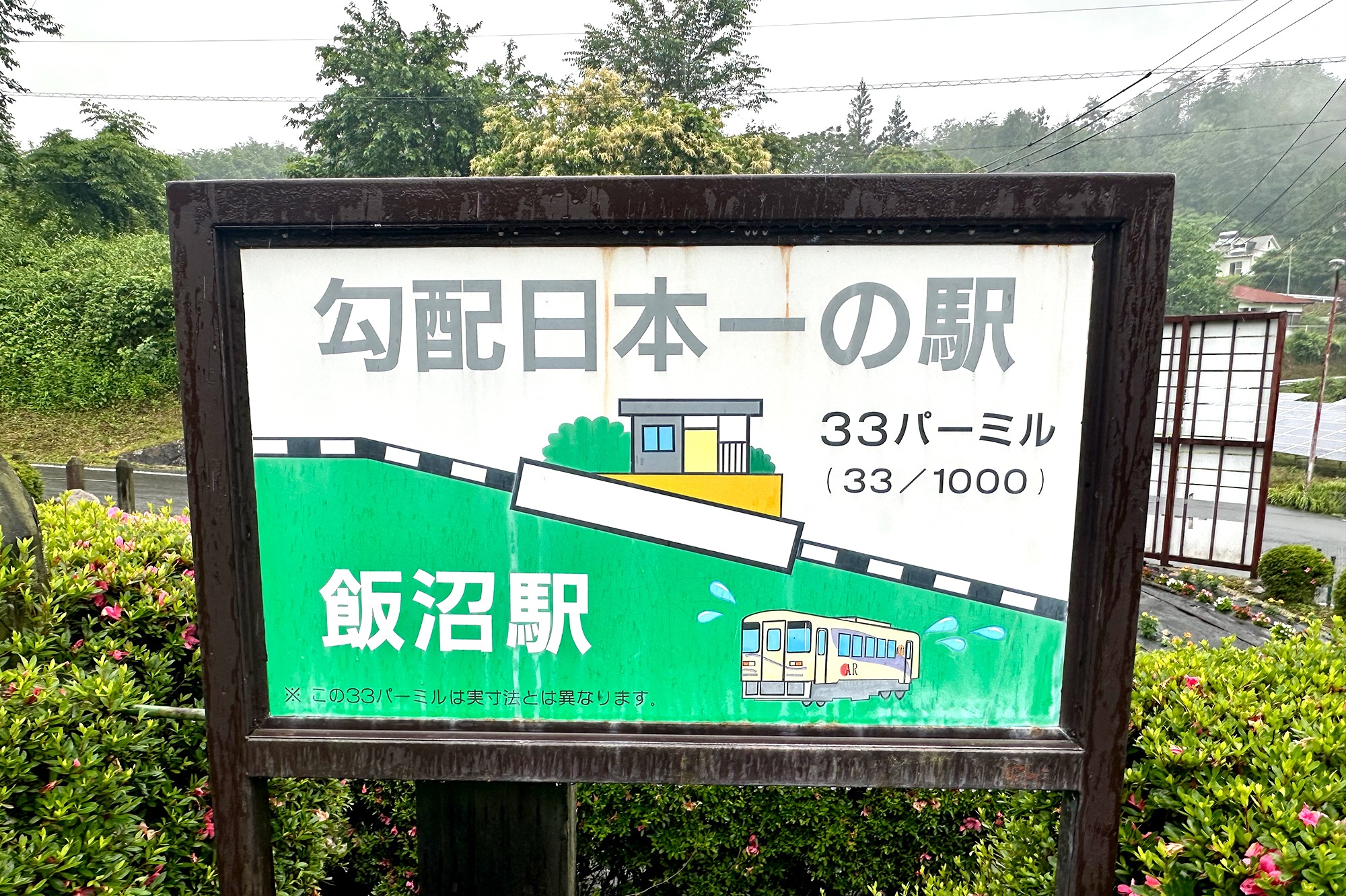 恵那駅から2駅目の「飯沼駅」は、日本で一番勾配が急な場所にある普通鉄道の駅です。鉄道の設置基準では勾配は5‰(パーミル)が上限とされているのに対し、ここは33‰(1kmで33mの高低差)という急斜面。特例で設置が認められた、全国でも非常に珍しい駅なのです。ホームに降り立つと、身体が少し傾いて感じられます。鉄道好きはもちろん、ちょっと変わった“体感スポット”としても面白いかも。