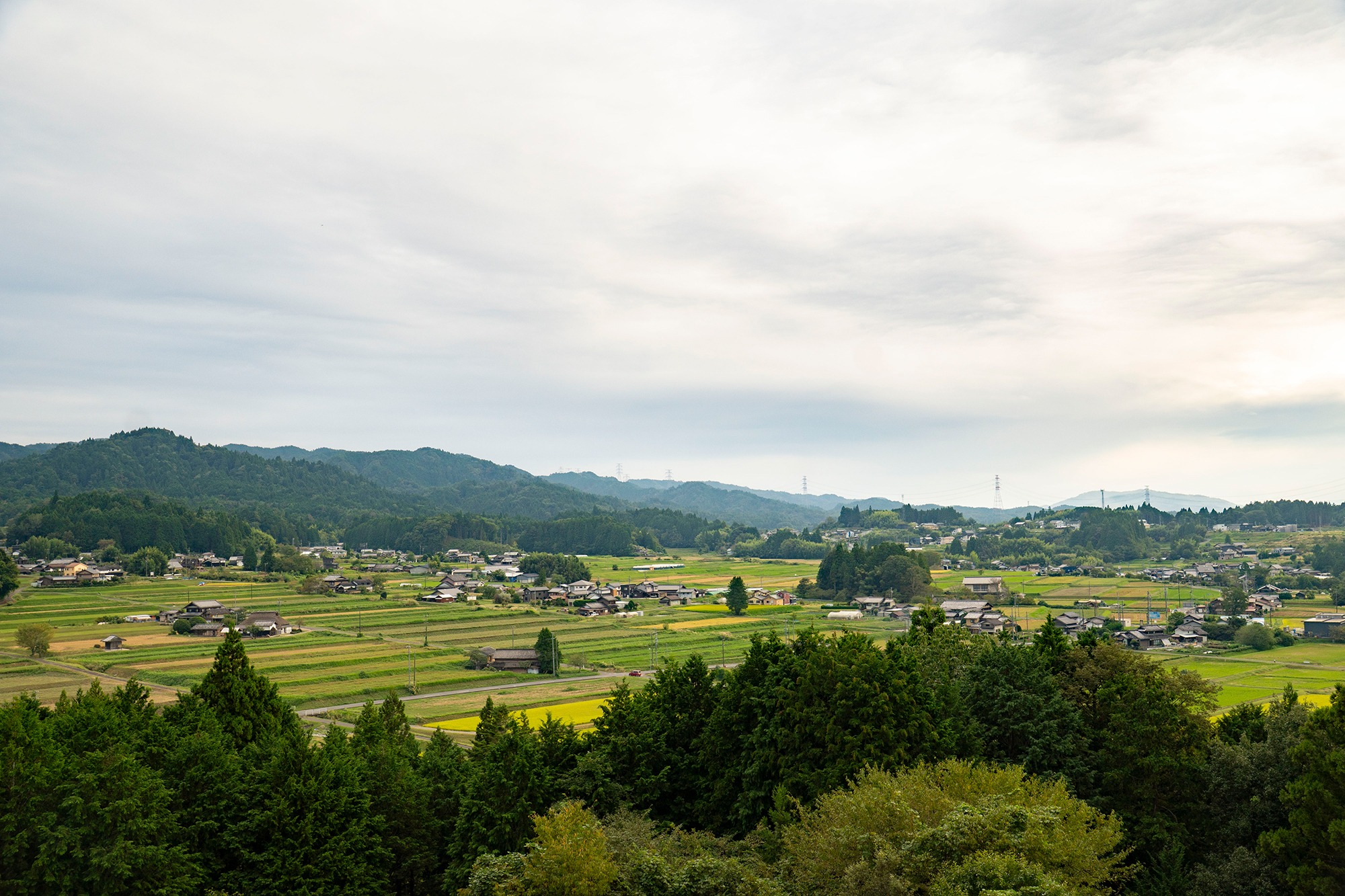 飯沼駅からさらに2駅目の「飯羽間(いいばま)駅」は、平成元年に「農村景観日本一」という称号を与えられた、恵那市富田地区の最寄り駅です。駅から歩くには少し距離がありますが、3キロほど離れた場所に、日本一の農村景観を一望できる「農村景観日本一展望所」があります。展望所から見下ろす景色は、ただ美しい田園風景というだけでなく、どこかのんびりした風情と懐かしさを感じるような景観です。