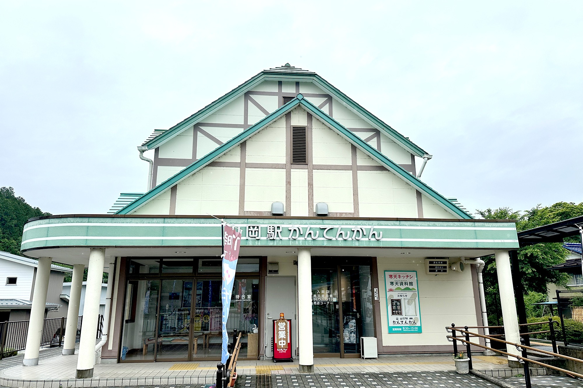 さらに列車で4駅進むと「山岡駅」に到着します。この駅に併設されているのが、寒天のの魅力を広く発信する施設 「食と健康のステーション 山岡駅かんてんかん」です。実はここ山岡町は、日本一の細寒天の生産地として知られています。「 海のない岐阜県でなぜ寒天?」と疑問に思われるかもしれませんね。その秘密は山岡特有の気候条件にあります。山々に囲まれたこの地は、冬は乾燥し、朝晩にぐっと冷え込み、日中には気温が上がるという寒暖差の大きな気候が特徴です。 食物繊維豊富でノンカロリーの寒天はぜひ日々の食卓に取り入れたい健康食品。 寒天資料館(入館無料)には、寒天の歴史や製法を学べるだけでなく、寒天を使ったメニューが味わえるレストランも併設されており、体に嬉しいヘルシーランチが楽しめます。