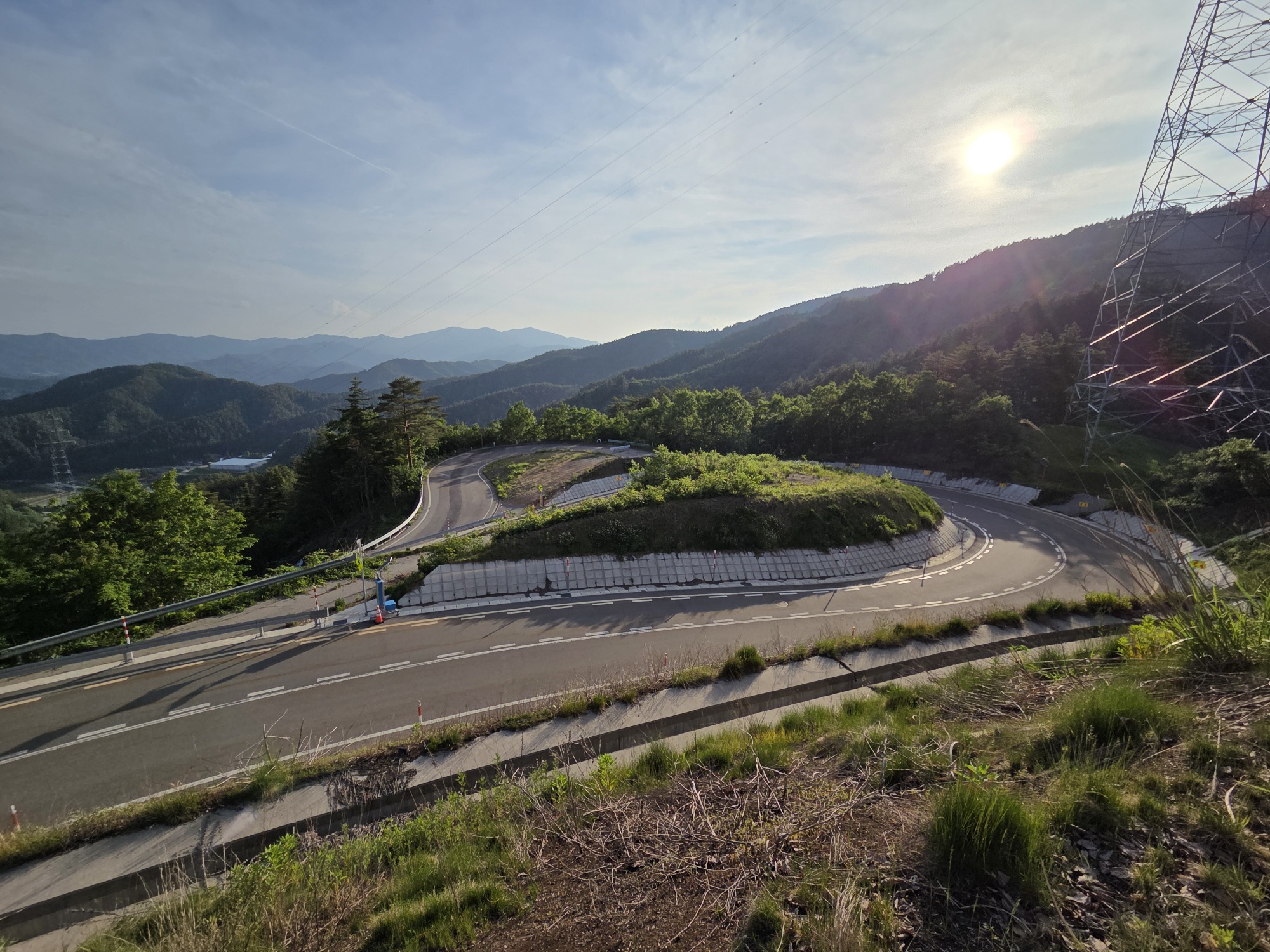 普段から晴れた日の頂上付近は見晴らしがよく、つづら折りの道を登るにつれて近くなる空が美しい峠です!