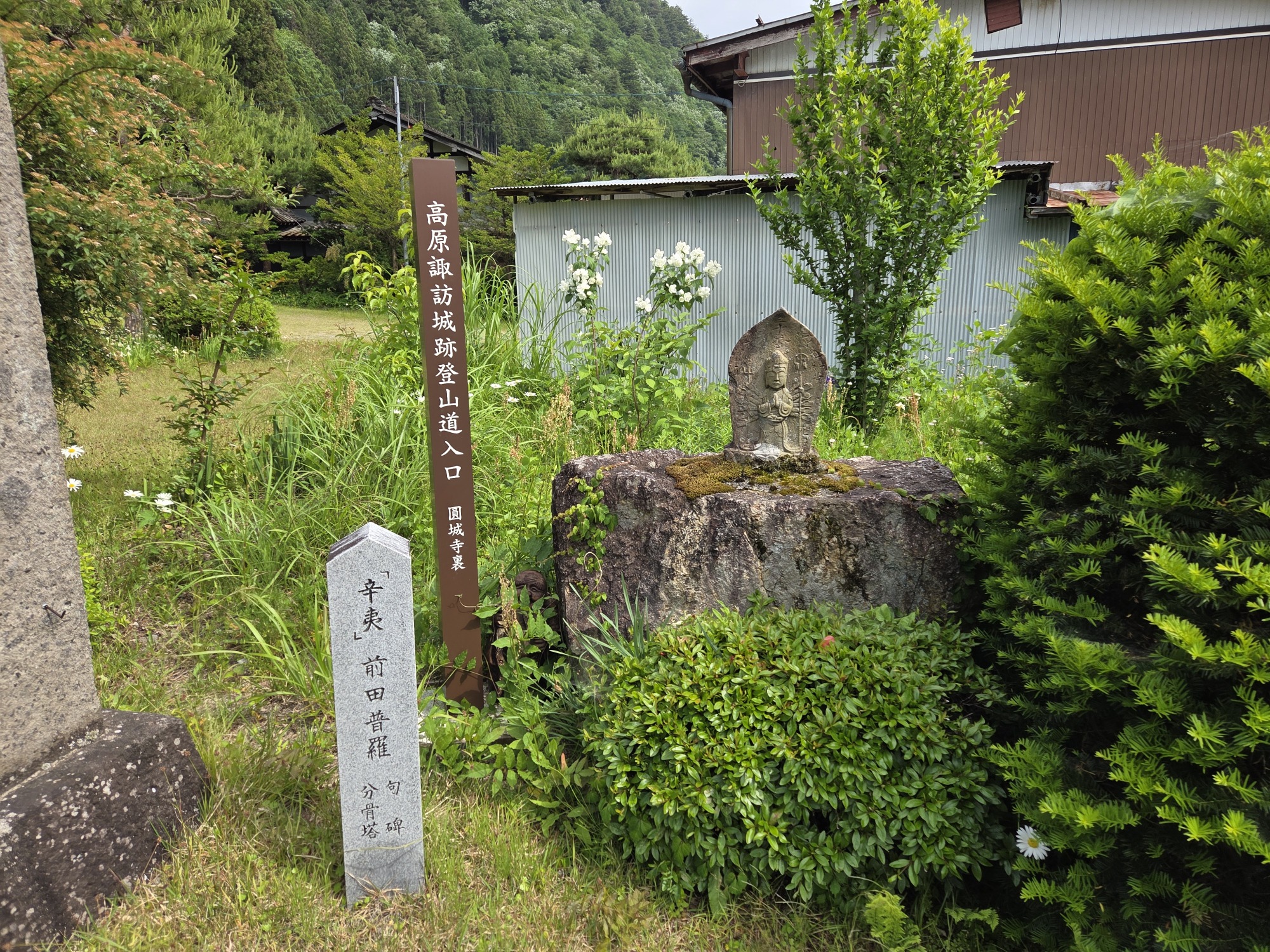 登山口は江馬氏下館から徒歩6分ほどのところにある「圓城寺」の本堂の裏手にあります。