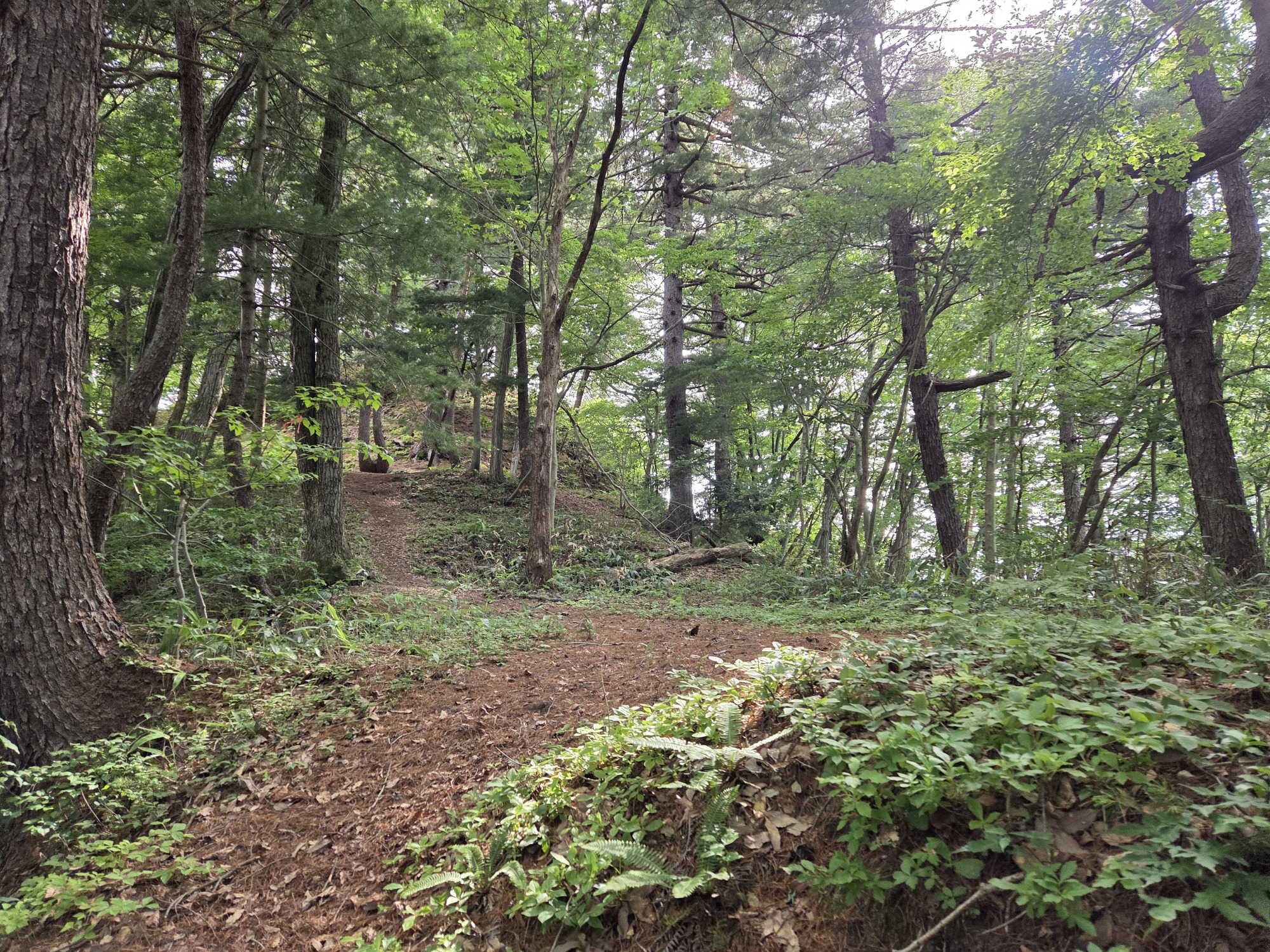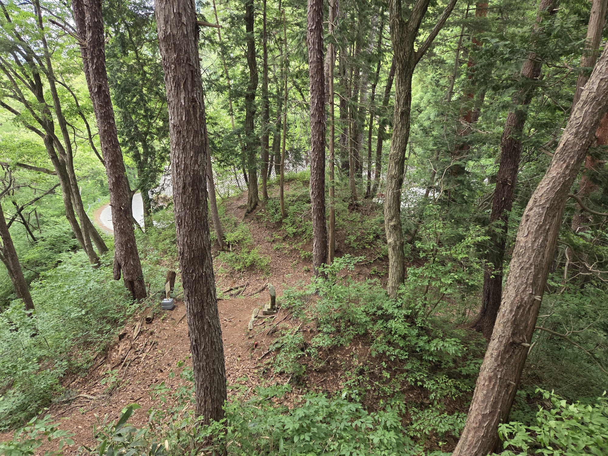 さらに、城跡というと「石垣が残っているのかな?」というイメージがあるかもしれませんが、今回のルートではそういった石垣は見られませんでした。