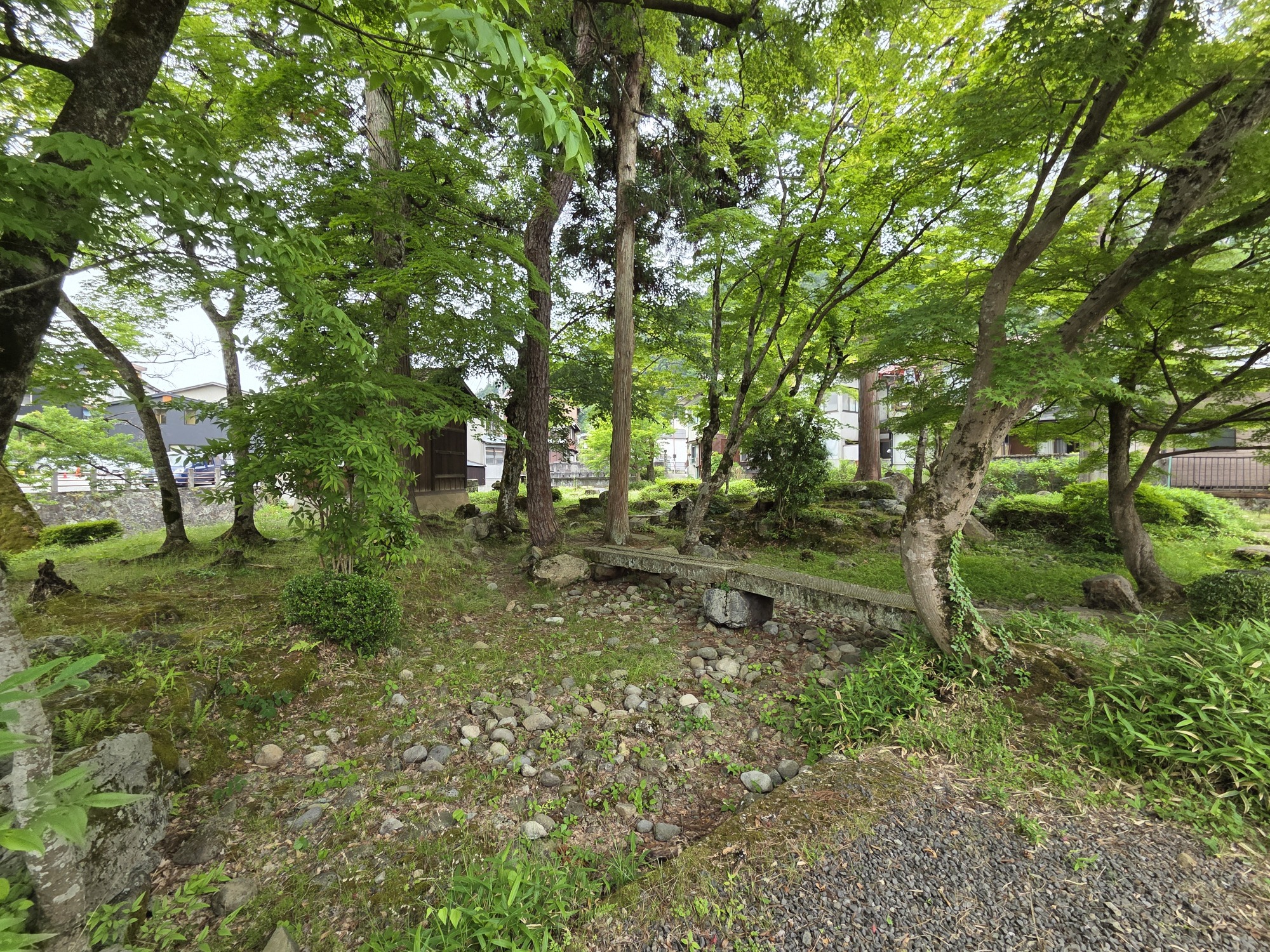実はこの土地自体、江馬氏が築いたとされる「東町城」の城跡。十六世紀末、武田信玄の越中攻めの際にその重臣である山県昌景が江馬氏に命じて築城させたと伝わる飛騨市唯一の平山城があった場所です。