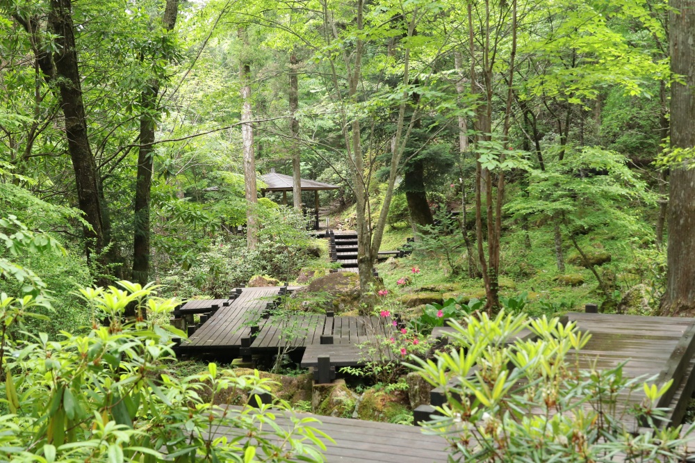整備された遊歩道では、渓流のせせらぎをBGMに、森林浴を楽しみながら爽やかなハイキングが可能。