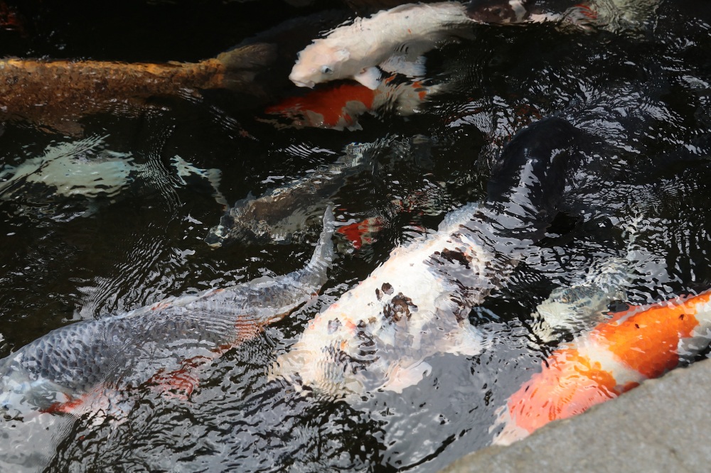 沿道には3つの共同井戸が設けられており、いまも湧き水が生活の中で息づいている様子がうかがえます。透明な水路を悠々と泳ぐ色とりどりの鯉の姿にも、心が和みます。