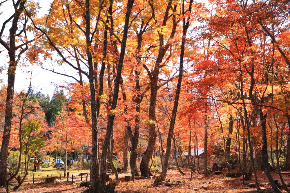 荘川町は白川郷とひるがの高原の中間にあり、どちらとも組み合わせやすいのが嬉しいところ。 少しマニアックですが、筆者のオススメはひるがの高原にある「ひるがの分水嶺(ぶんすいれい)公園」。特に11月初旬の紅葉の美しさは格別です。周囲一帯がオレンジ色一色に包まれます。