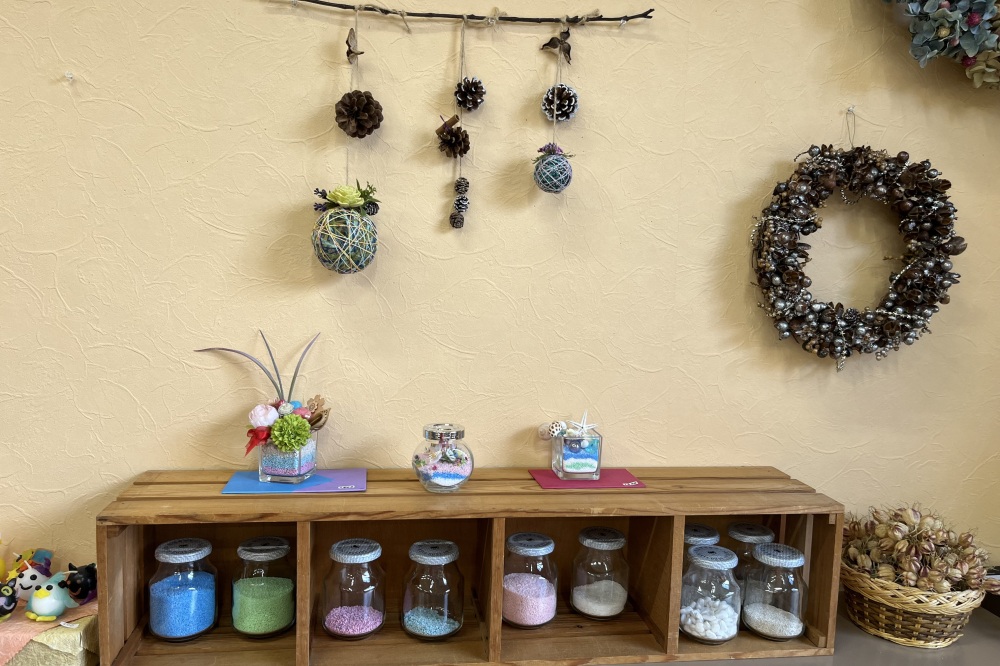 今回は「香る体験工房」でハーブ小物作りに挑戦。花材の種類が豊富で迷ってしまうほどでした。