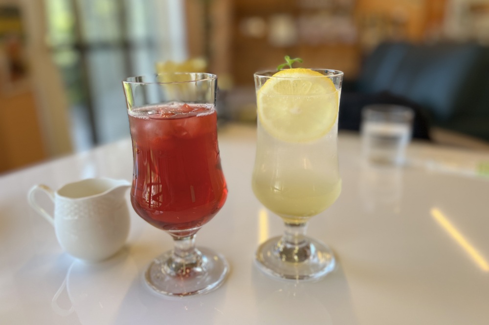 暑い日にはフレーバーティやトロピカルマロウがおすすめです。ハーブ園を眺めながらゆったり過ごすのもいいですね。気に入った茶葉を購入することもできますよ。