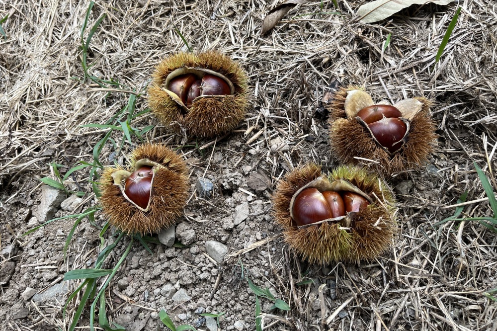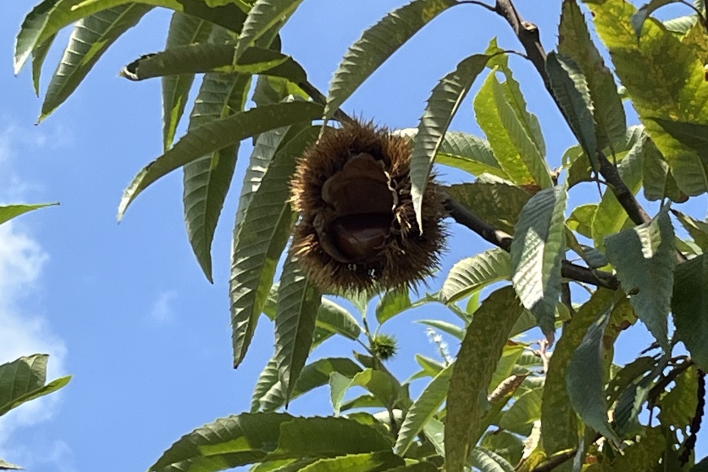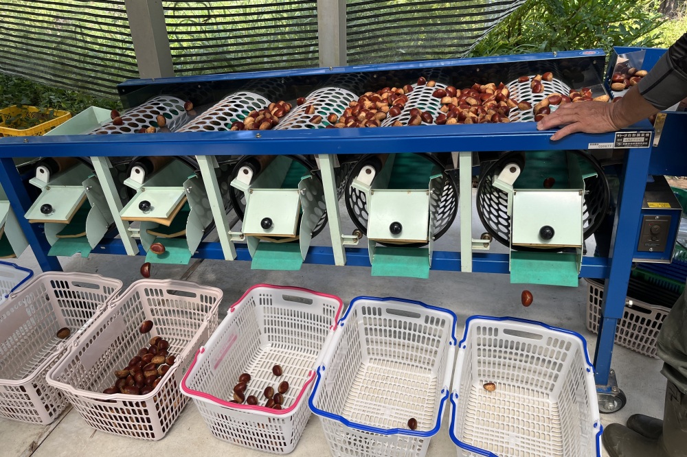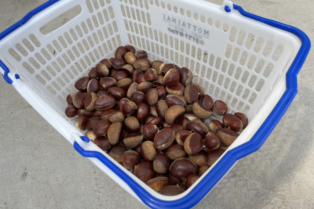 収穫期は8月下旬から10月上旬まで品種ごとに異なり、「えな宝来」や「丹沢」など多彩。甘味の強い利平栗は一方で割れやすく、栽培が難しいといいます。