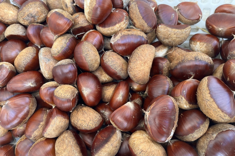 利平栗は山県市大桑地区の土田健吾氏が生み出した品種で、大粒で甘味が強く「栗の王様」とも呼ばれる存在。土田家の屋号「利平治(りへいじ)」がその名の由来です。