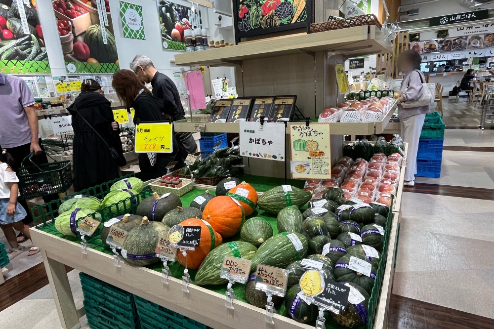 山県バスターミナル内にある「山県ばすけっと」は、地元農家の農産物や特産品が揃う直売所。お土産選びや食事も楽しめる注目スポットです。