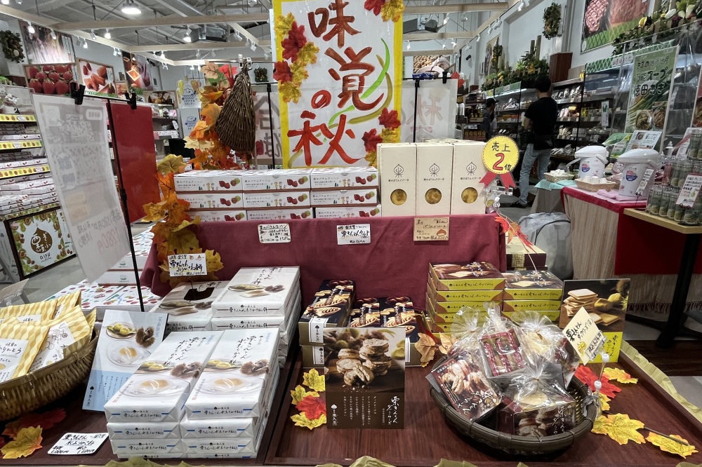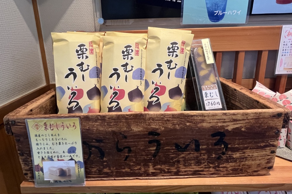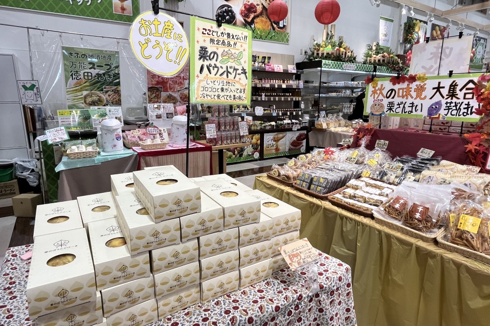 店内にはパウンドケーキやバームクーヘン、フィナンシェなど栗を使ったお菓子がずらり。新作も続々登場しており、訪れるたびに新しい発見があります。