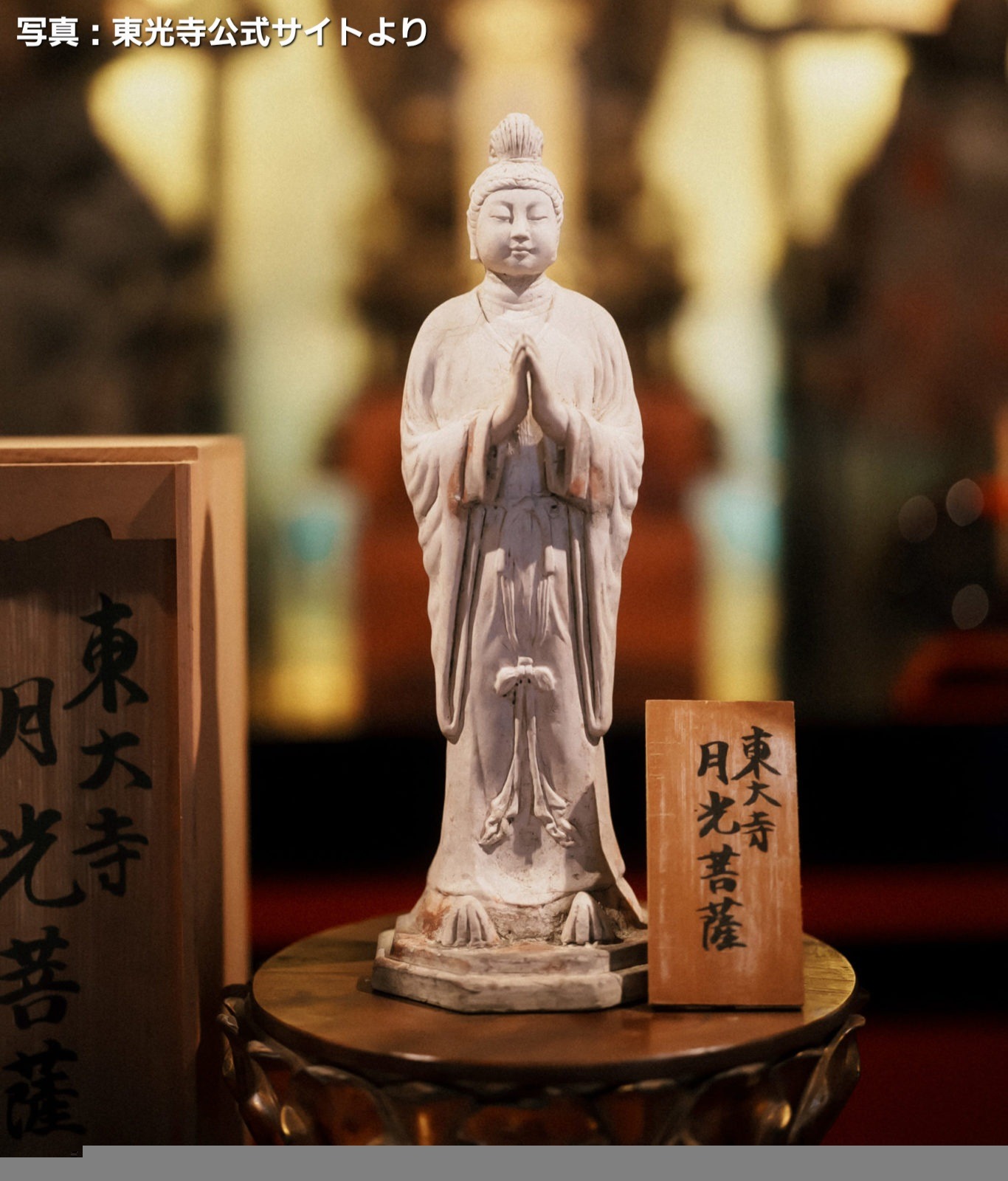 「月光菩薩」は、月の光を象徴する菩薩で、「日光菩薩」と一緒に薬師如来の脇侍として薬師如来の教えを守る役割を担っているそうです。