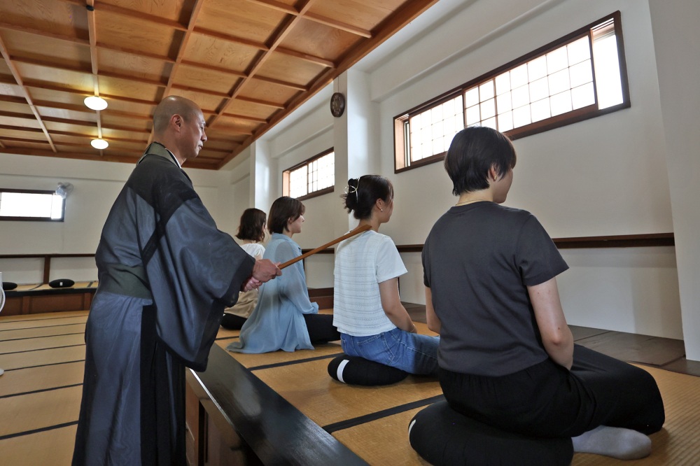 仲間たちには初めての座禅経験。ご住職に座り方や所作を教えていただき、座禅を体験しました。
