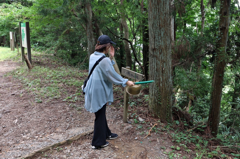 城山公園の散策路は今年の6月に熊の目撃情報があったらしく、至るところに熊よけのための鐘(音を鳴らす場所)があります。熊には出会いたくありませんので、しっかり鐘を鳴らして進むことにします。